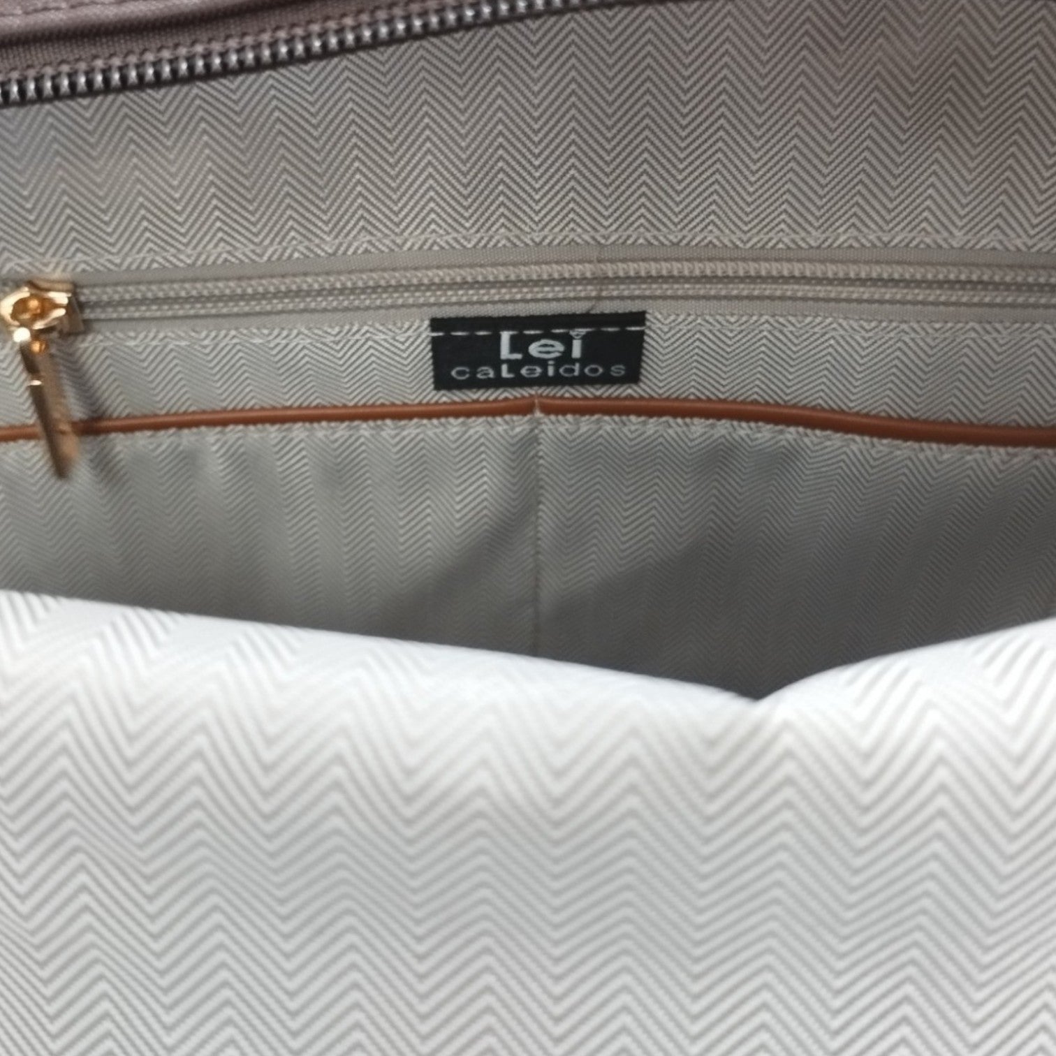 Lo Zaino firmato Caleidos, modello pratico e casual realizzato in tessuto nella variante marrone è caratterizzato da manico in pelle e da comoda tasca esterna, l'interno è foderato in tessuto di cui dispone di due tasche aperte ed una chiusa a zip.