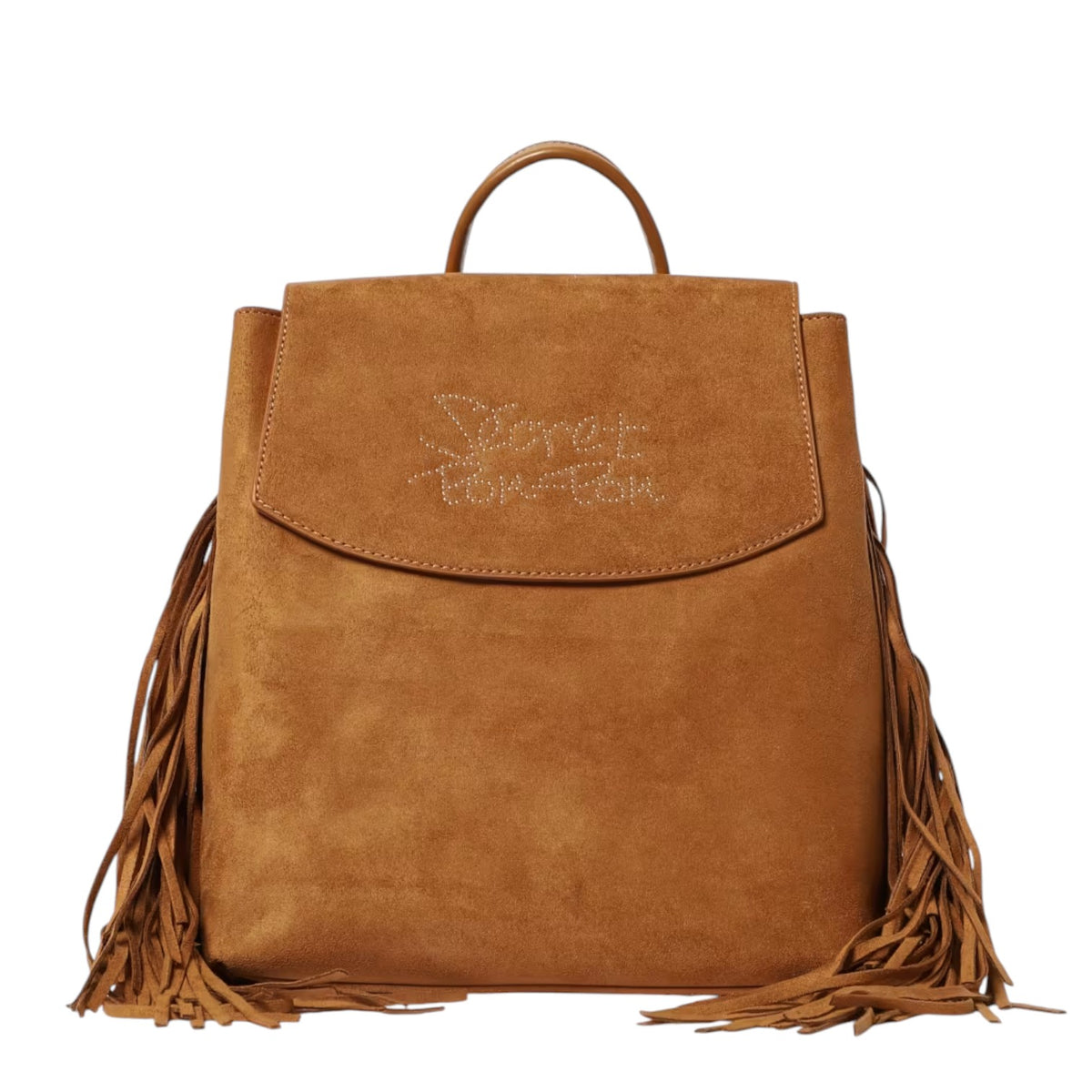 Secret Pon Pon Kate Zaino Donna in Camoscio Sintetico Cuoio con Frange