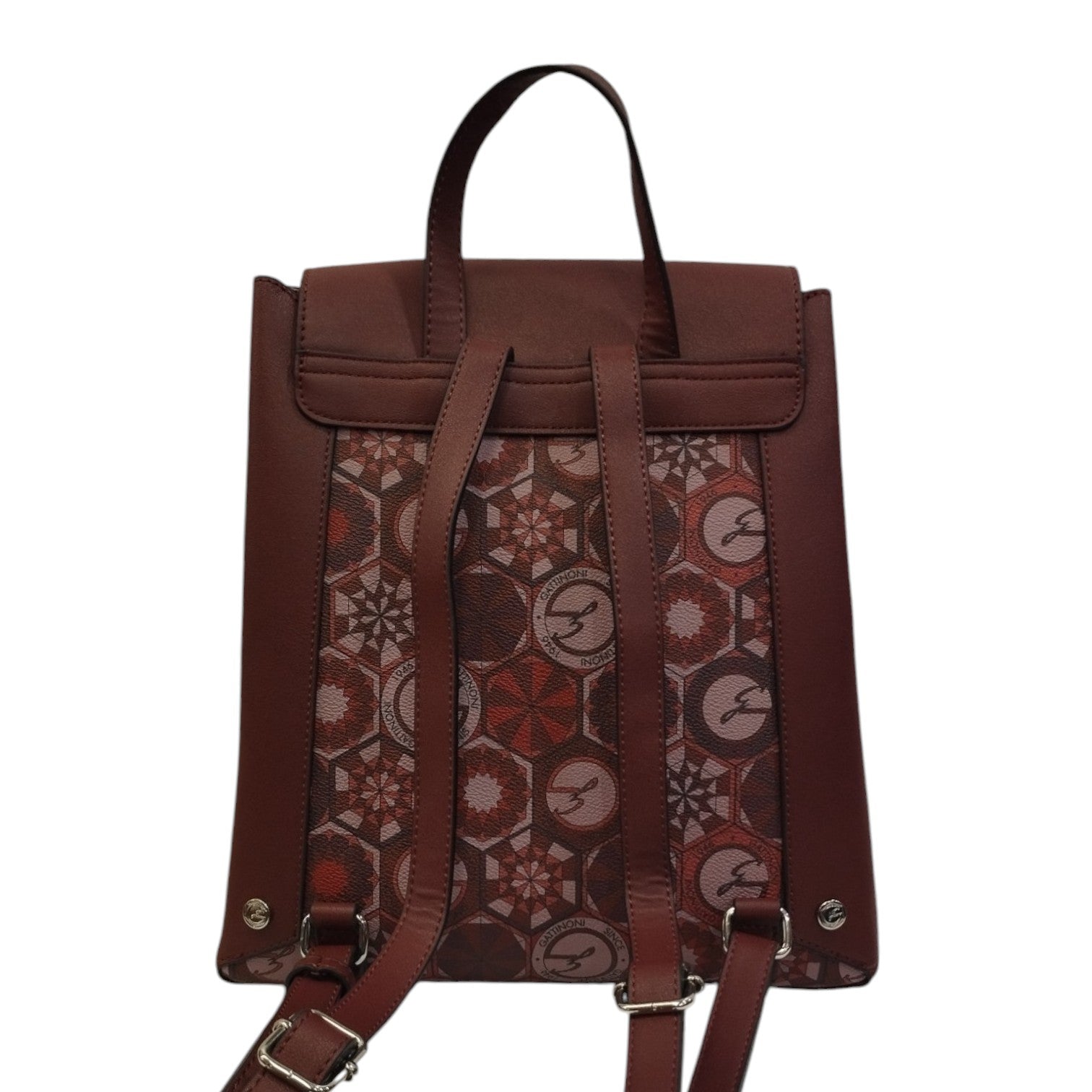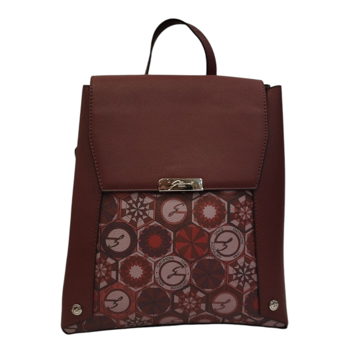 Gattinoni Roma Zaino Donna con 3 Scomparti in Stampa Teodosia Bordeaux e Chiusura con Bottone
