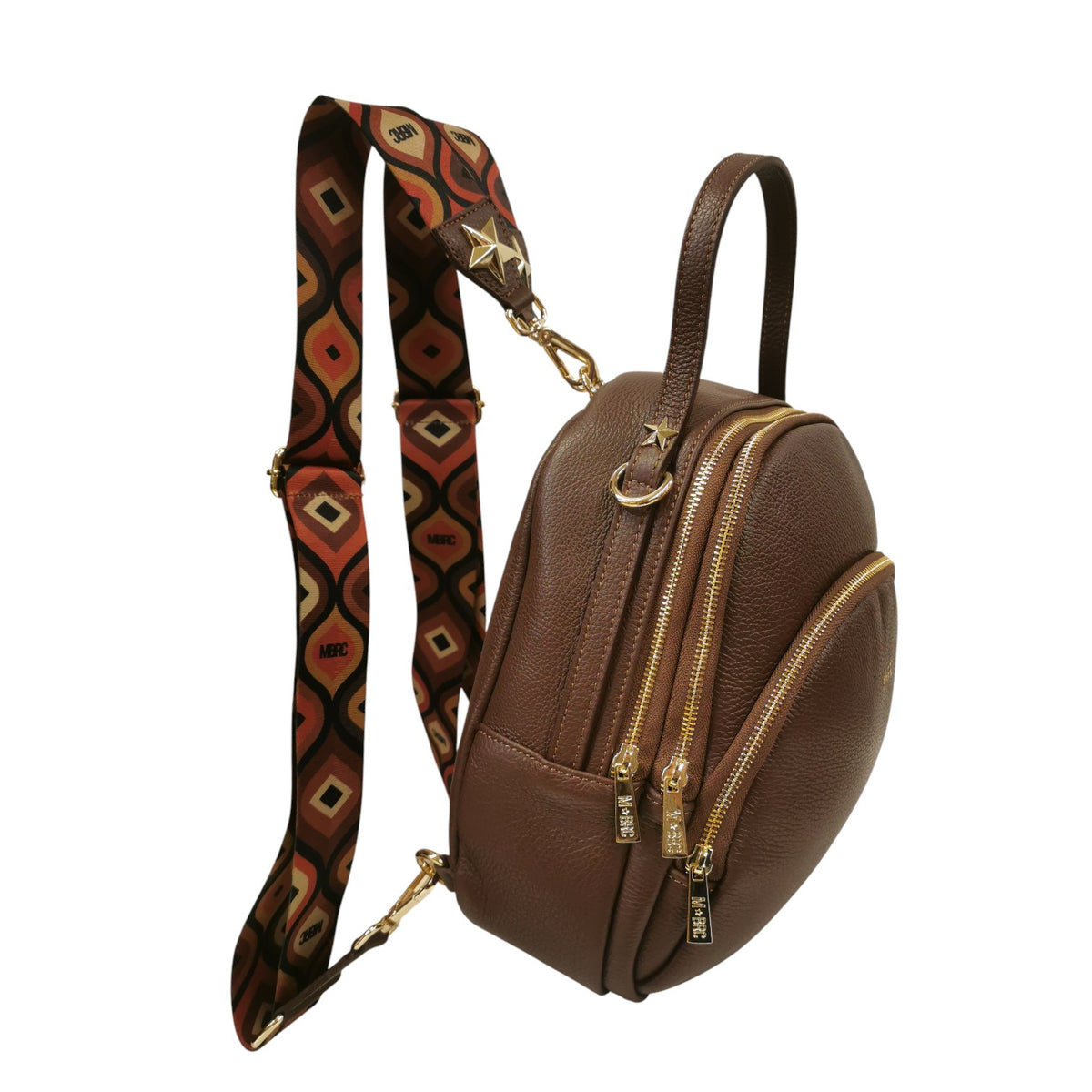 M Brc Zaino a Borsa Donna Linea Obona in Pelle Marrone con Doppi Spallacci e Scomparti