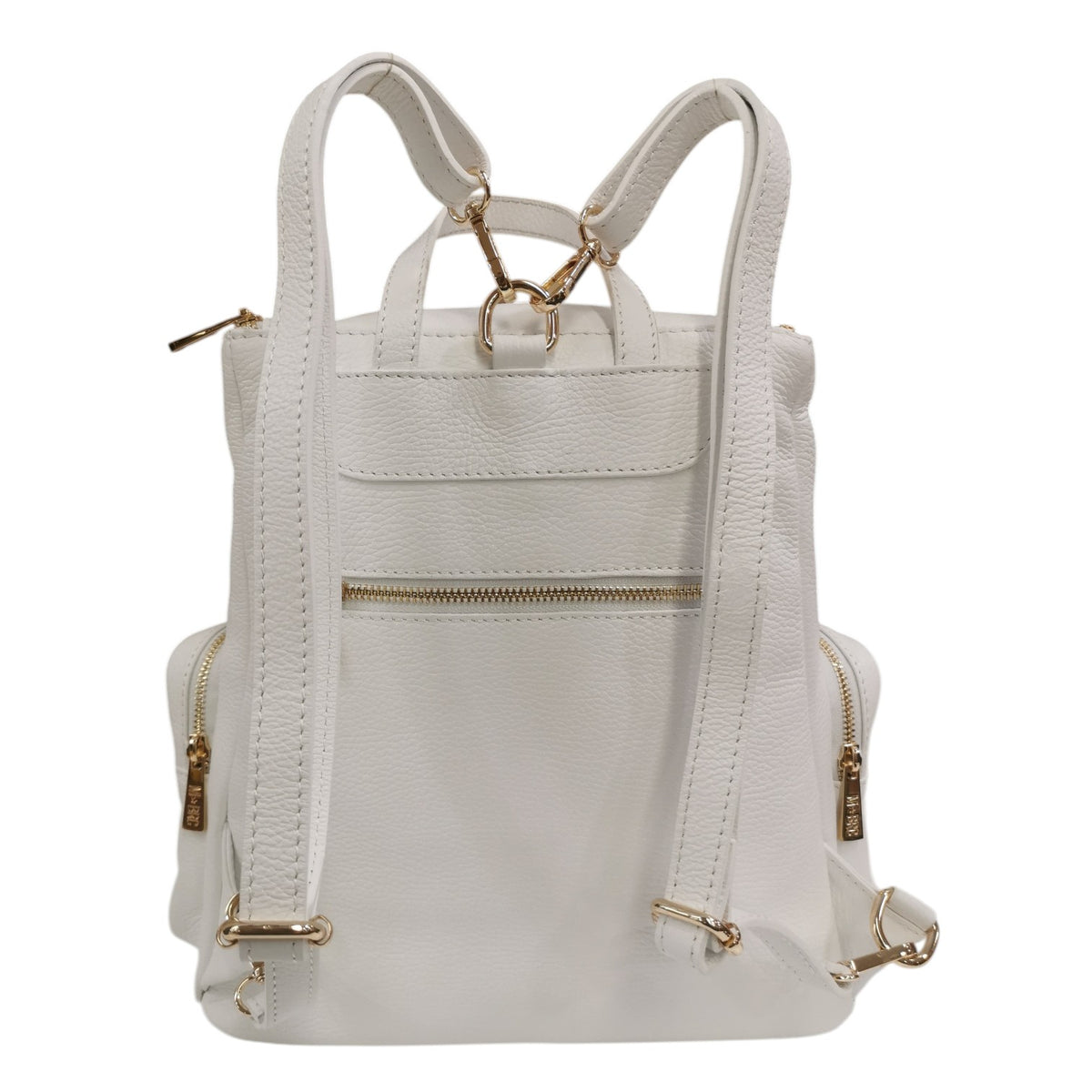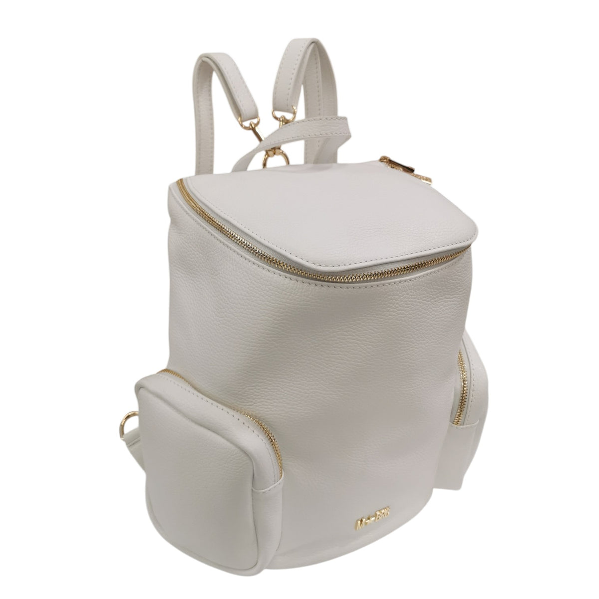 M Brc Zaino Donna in Pelle Bianco Linea Voyager con Tasche Laterali e Chiusura con Cerniera