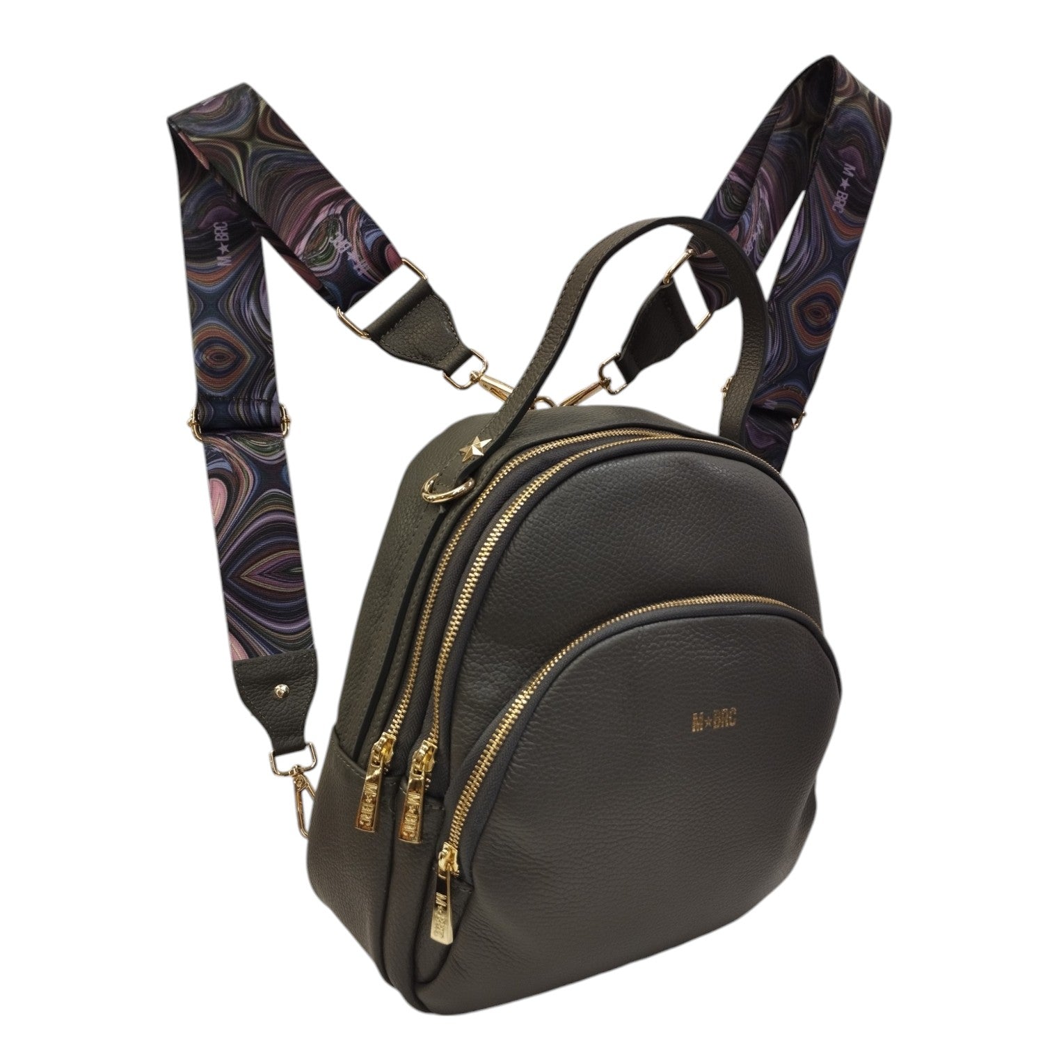 M Brc Zaino Grigio Linea Obona con Spallacci in Tessuto e Pelle