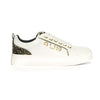 La Sneakers firmata 4US by Paciotti, realizzata in ecopelle è caratterizzata da una tomaia bianca ed inserti con applicazione strass posti sul retro, presenta un plantare in pelle ed una scritta logo in rilievo con rifinitura dorata sul lato.