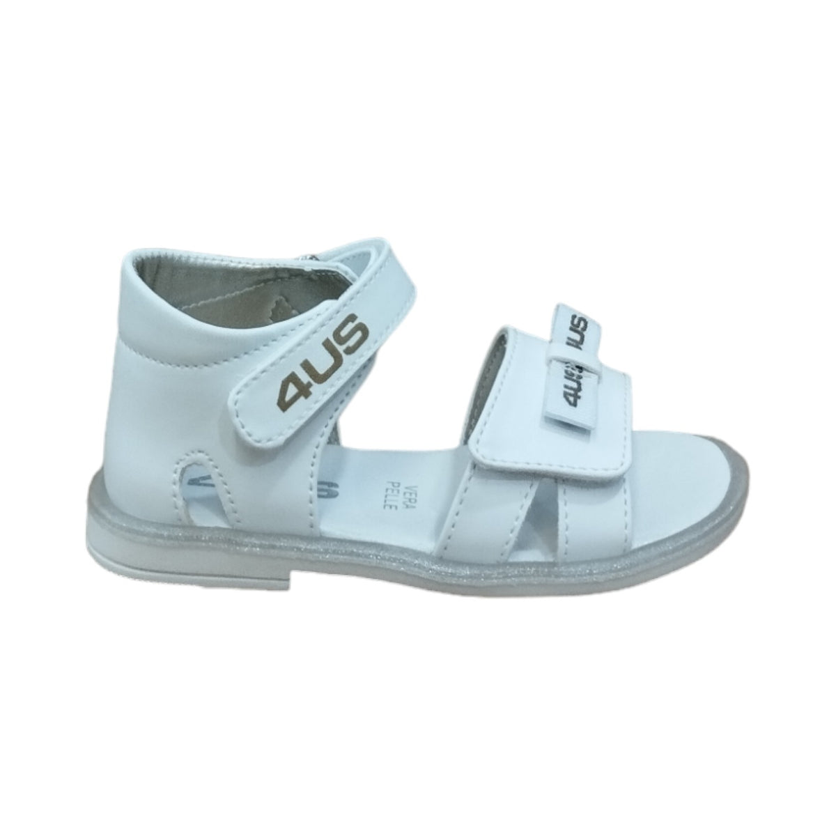 4us Sandalo Bianco con Strappo e Fiocco da Bambina