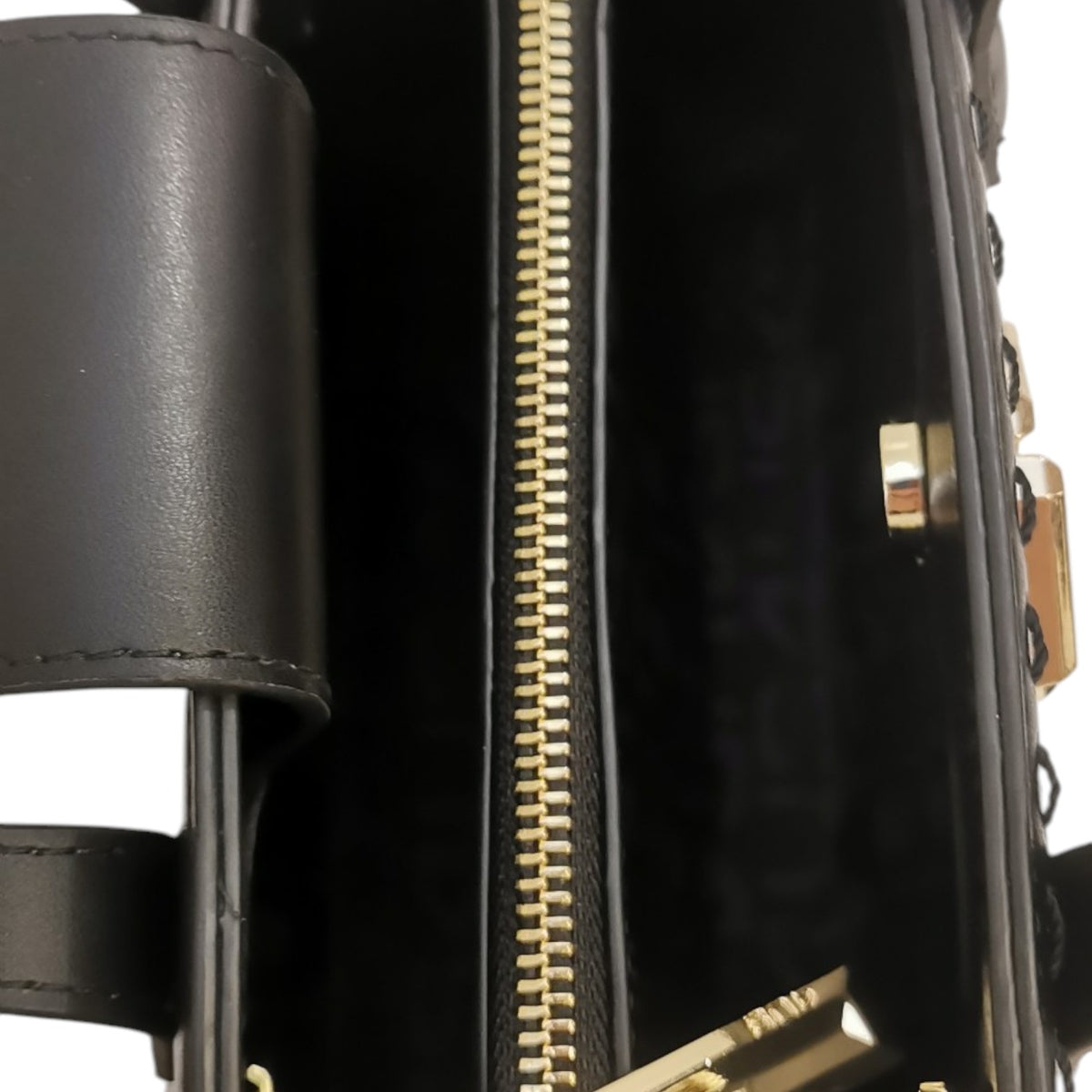 La Borsa a mano firmata 4us by Paciotti, realizzata in ecopelle nella variante nera è caratterizzata da logo frontale in metallo dorato e da tracolla regolabile e removibile per portarla a spalla, presenta tre scomparti di cui quello centrale chiuso con zip, con taschini interni.