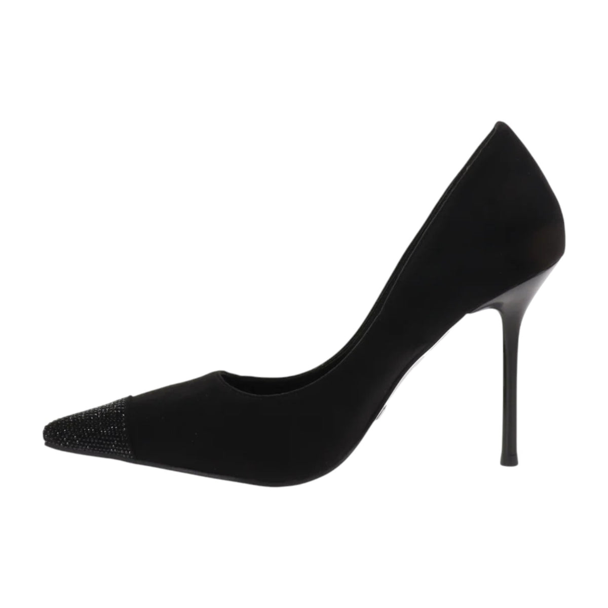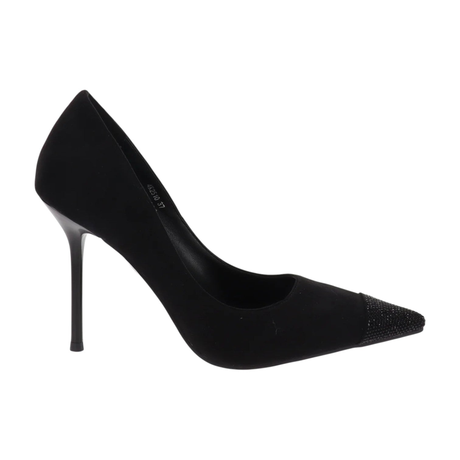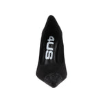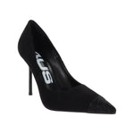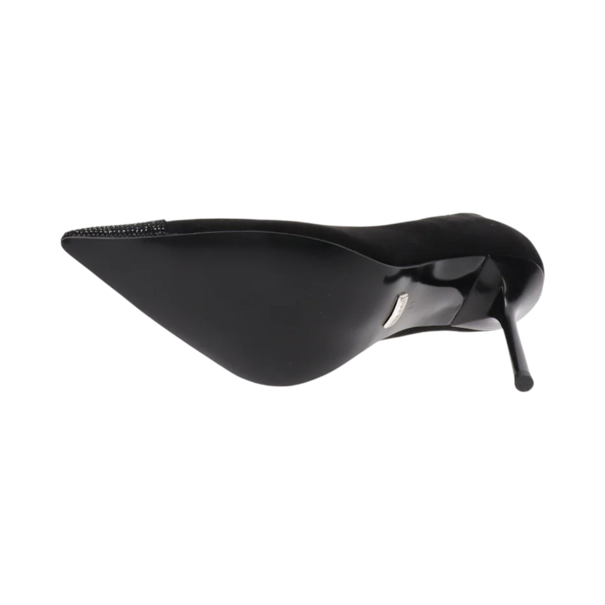 4US Dècollettè Donna in Camoscio Nero con Punta a Strass e Tacco a Stiletto Alto 100mm