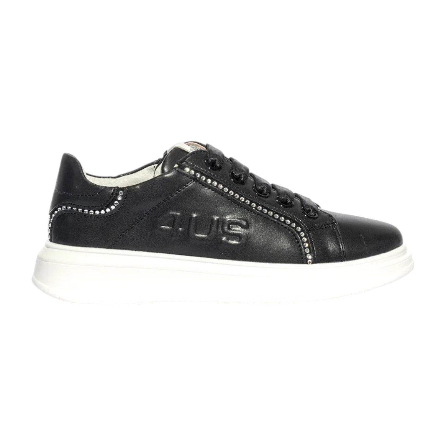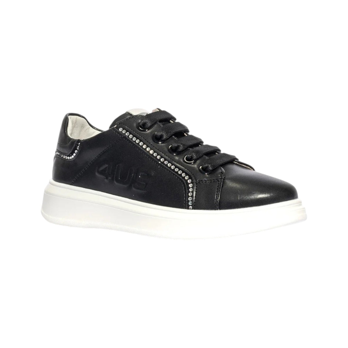 4US Sneakers Bambina in Ecopelle Nera con Strass Argento