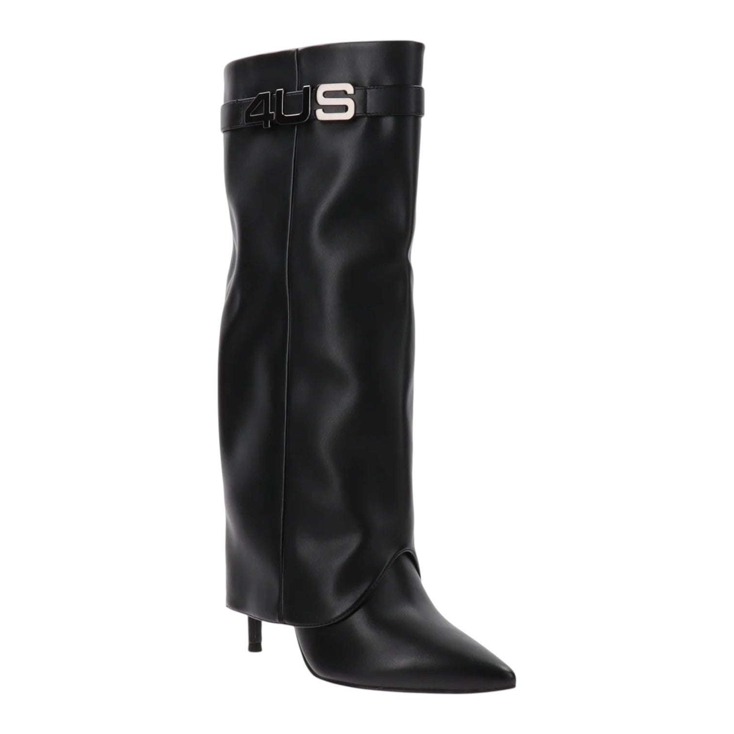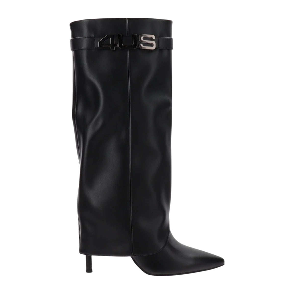 Lo Stivale firmato 4us by Paciotti, realizzato in ecopelle nera con risvolto combinano eleganza e funzionalità offrendoti una calzata confortevole grazie a materiali sintetici di alta qualità. La loro struttura resistente garantisce durabilità, mentre il design sofisticato si adatta perfettamente a look sia casual che più formali, ideale per chi cerca stile e praticità in un unico modello. Presenta un tacco a stiletto alto 10cm ed una linguetta intorno allo stivale con dettaglio logato.