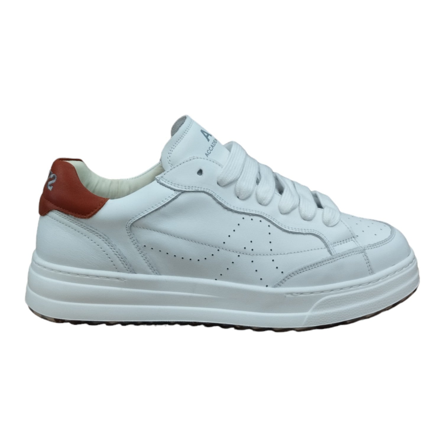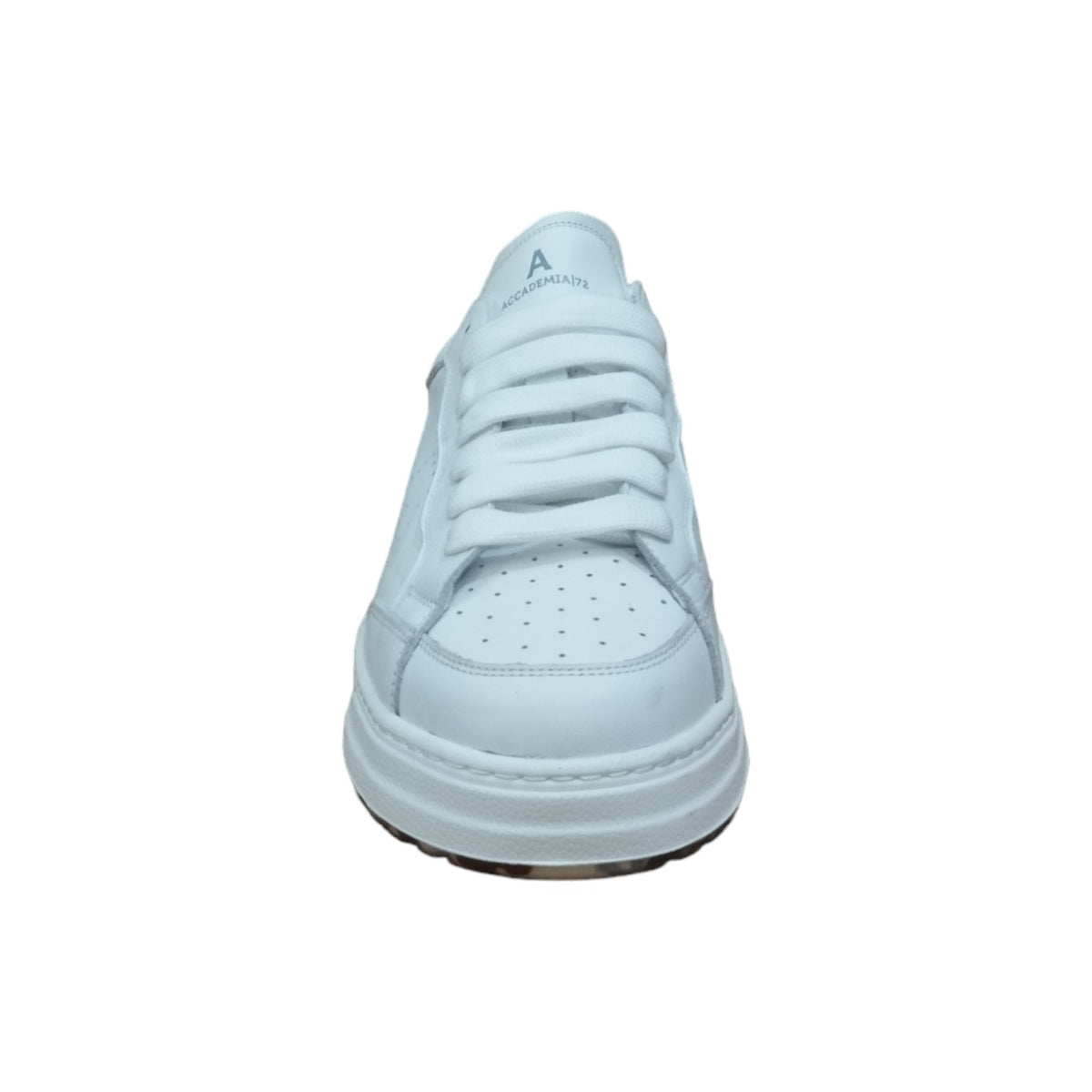 La Sneakers firmata Accademia, realizzata in pelle è caratterizzata da logo laterale forato e da una fodera in tessuto e spugna aiuta a creare un microclima ideale per il piede. Inoltre, presenta un plantare morbido estraibile foderato in pelle e suola in gomma alta 4cm cucita in punta e sul tallone.