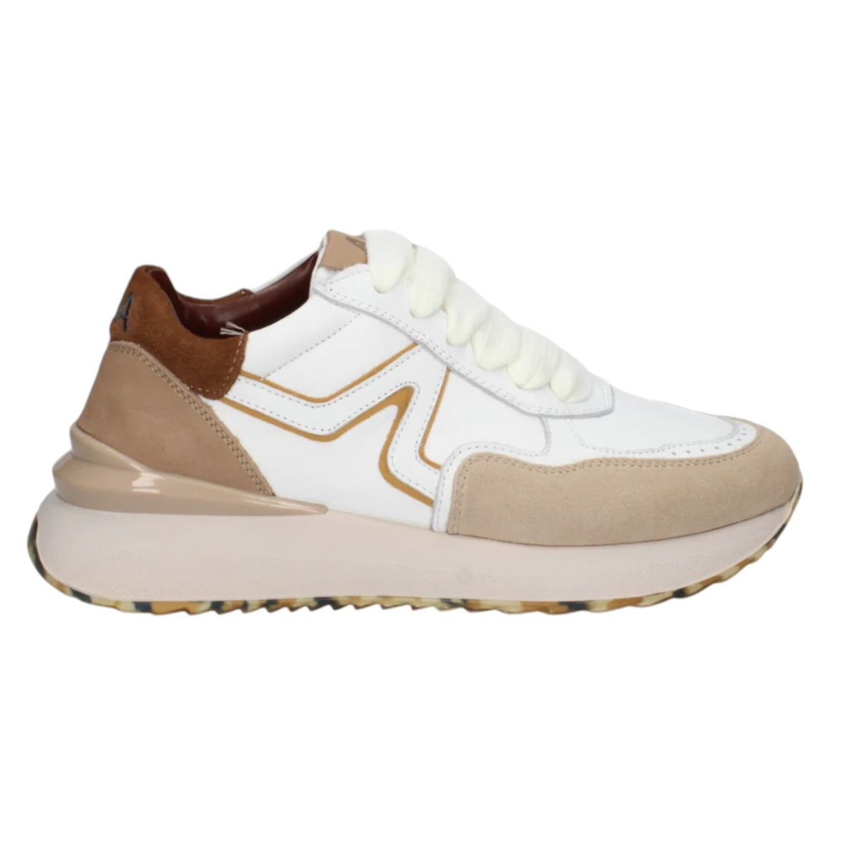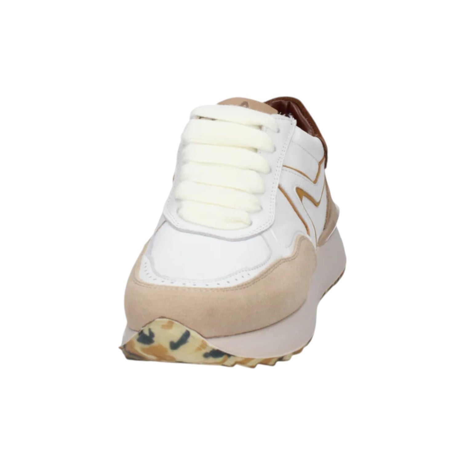La Sneakers firmata Accademia, realizzata in pelle, camoscio e tessuto con dettagli a contrasto è caratterizzata da logo laterale bordato in camoscio e lacci oversize. Presenta una fodera in tessuto e spugna che aiuta a creare un microclima ideale per il piede, con plantare morbido estraibile foderato in pelle.