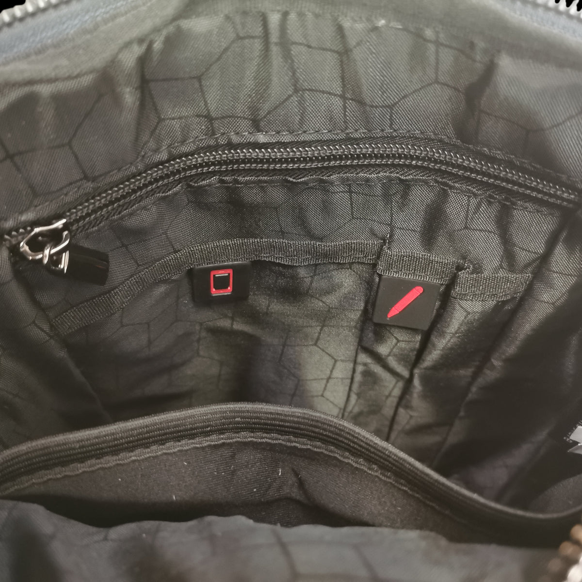 Il Borsello firmato Aeronautica Militare, realizzato in tessuto modello rettangolare con tracolla fissa e regolabile, apertura centrale con zip, sul davanti è presente una piccola tasca con apertura con zip in verticale.