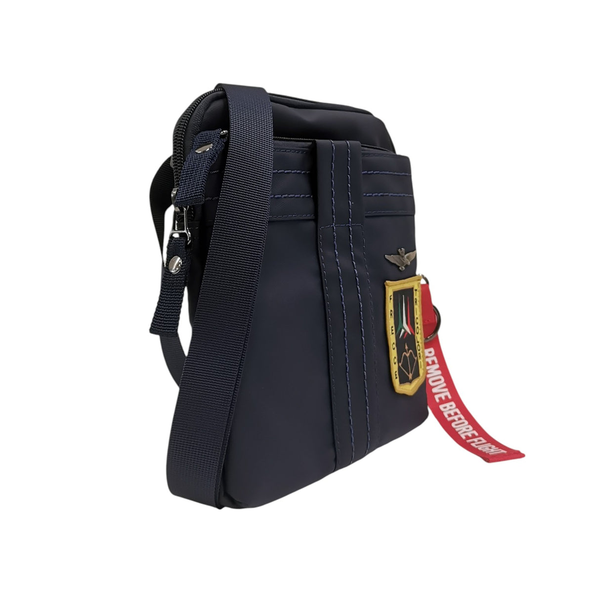 Il Borsello firmato Aeronautica Militare, realizzato in tessuto blu è caratterizzato da tracolla regolabile e taschino con zip internamente e scomparto porta tablet o iPad. Il prodotto è caratterizzato ulteriormente dal fregio delle Frecce Tricolori e dal portachiavi rimovibile “Remove before flight”.