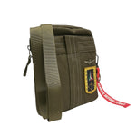 Il Borsello firmato Aeronautica Militare, realizzato in tessuto verde è caratterizzato da tracolla regolabile e taschino con zip internamente e scomparto porta tablet o iPad. Il prodotto è caratterizzato ulteriormente dal fregio delle Frecce Tricolori e dal portachiavi rimovibile “Remove before flight”.