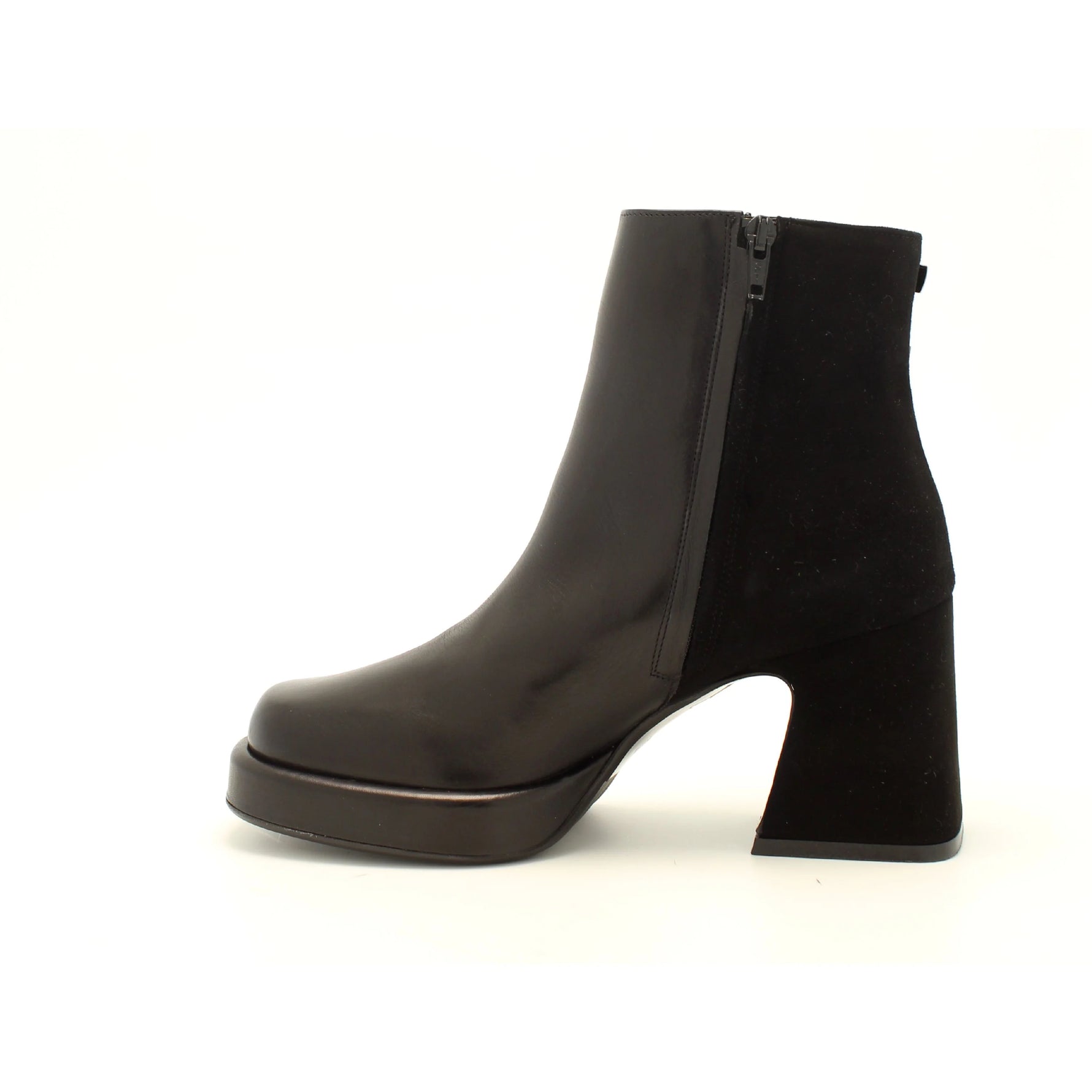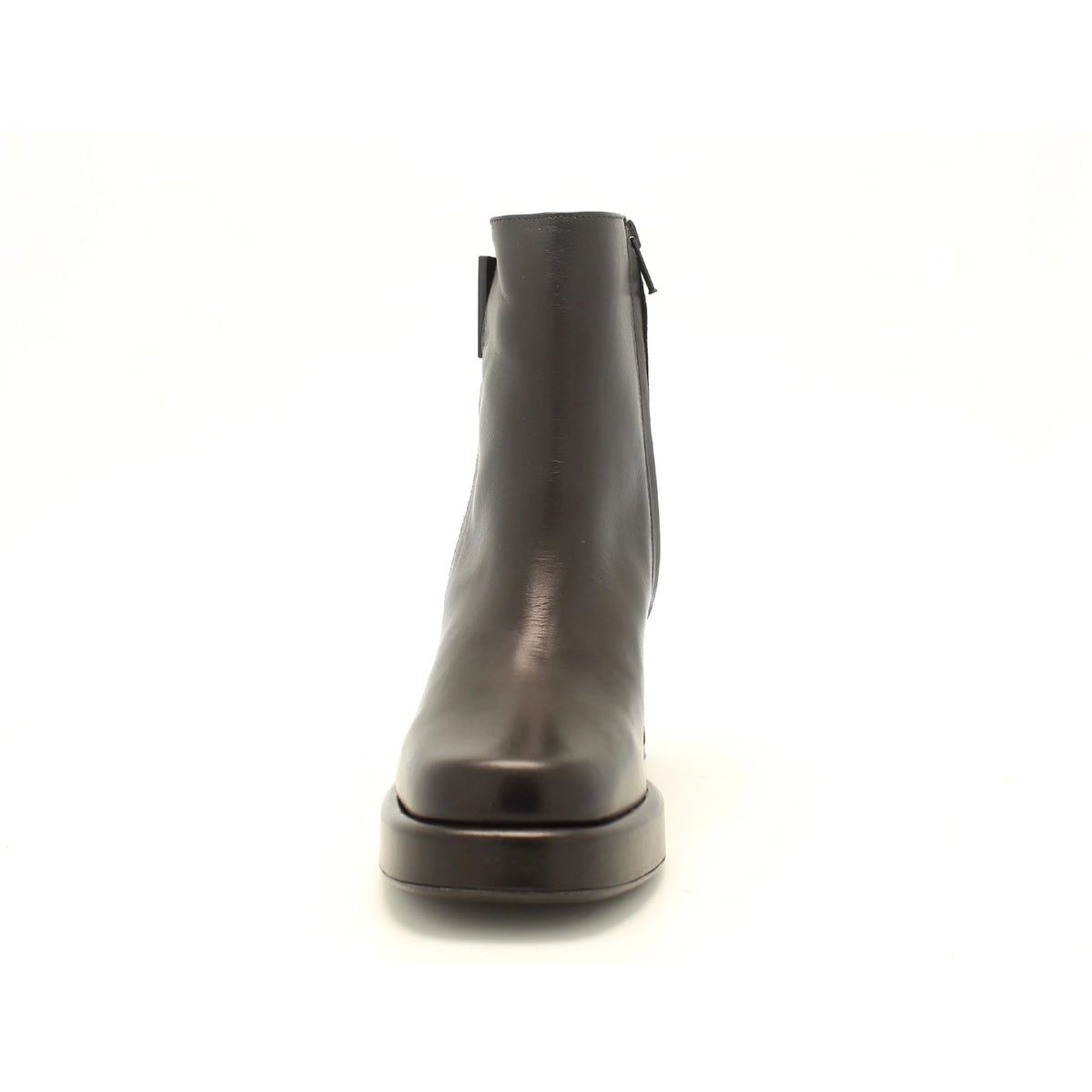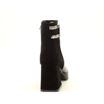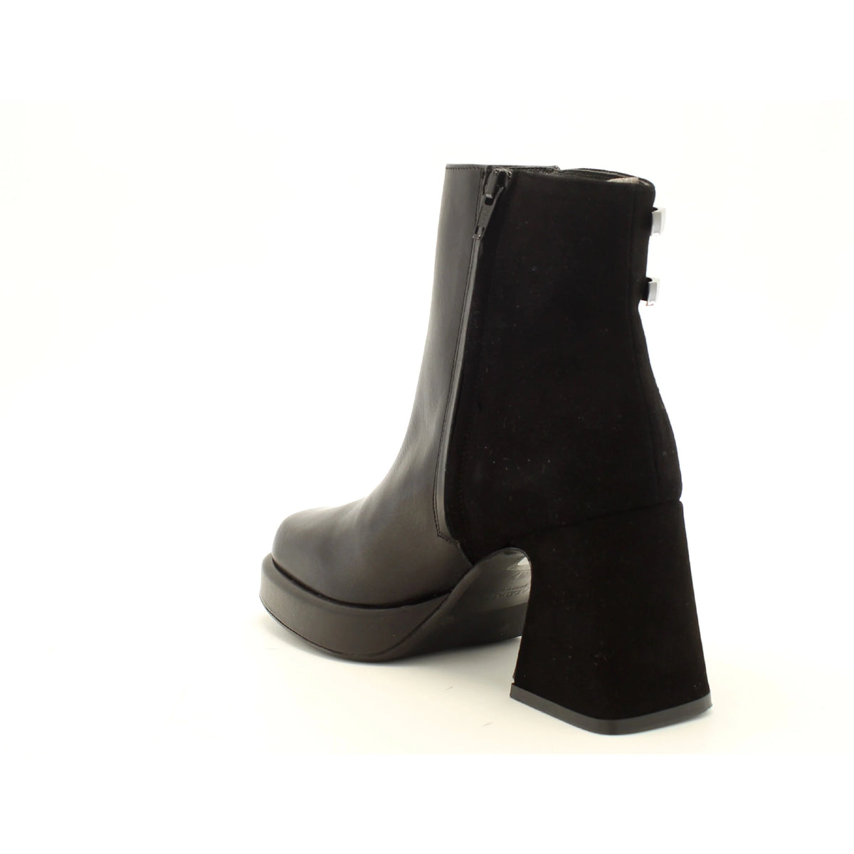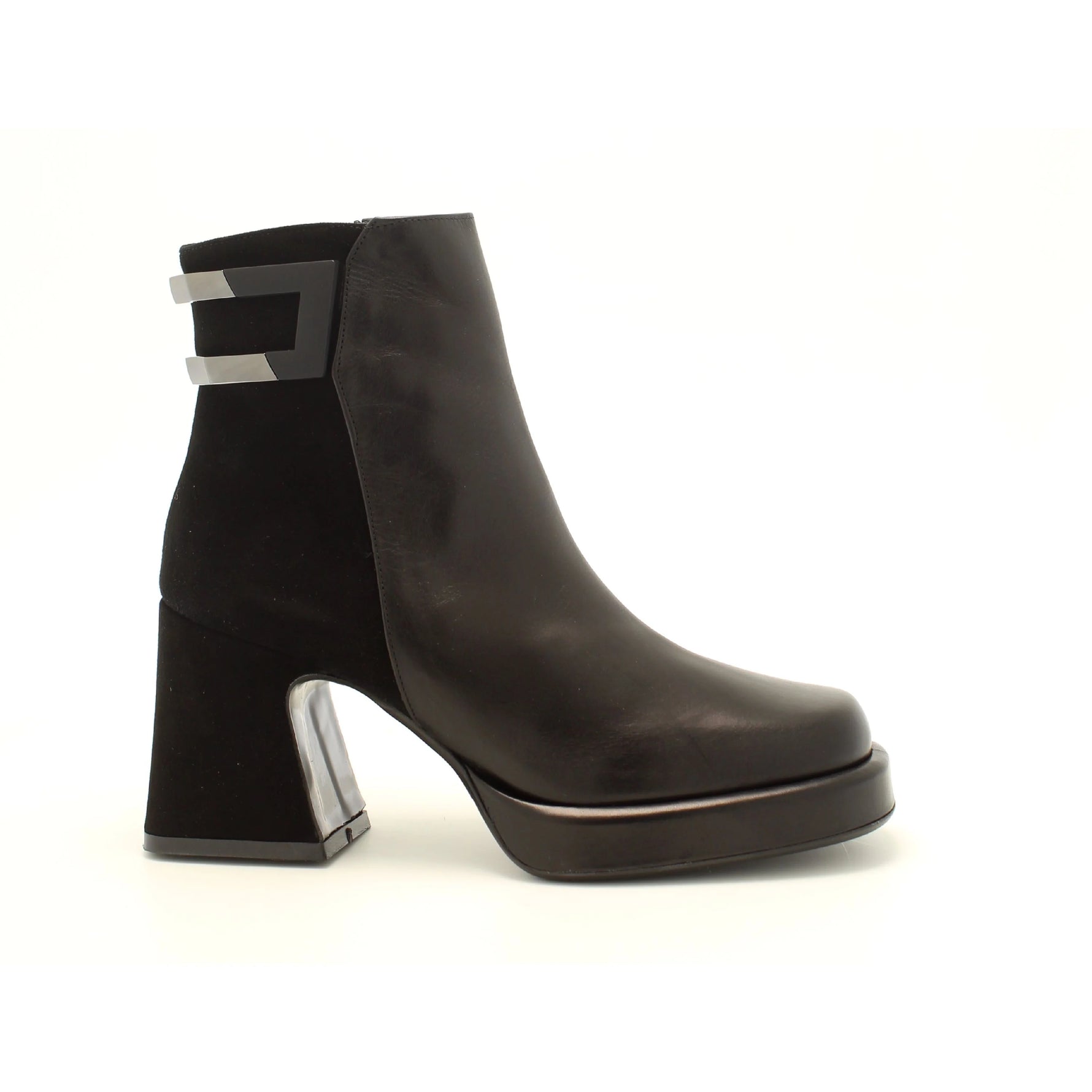 Il Tronchetto firmato Albano, realizzato in pelle e camoscio è caratterizzato dalla presenza di un accessorio decorativo posizionato sul lato esterno del gambale. Fodera e soletta interna in vera pelle, con chiusura con zip laterale e tacco rivestito in camoscio, alto 8cm.