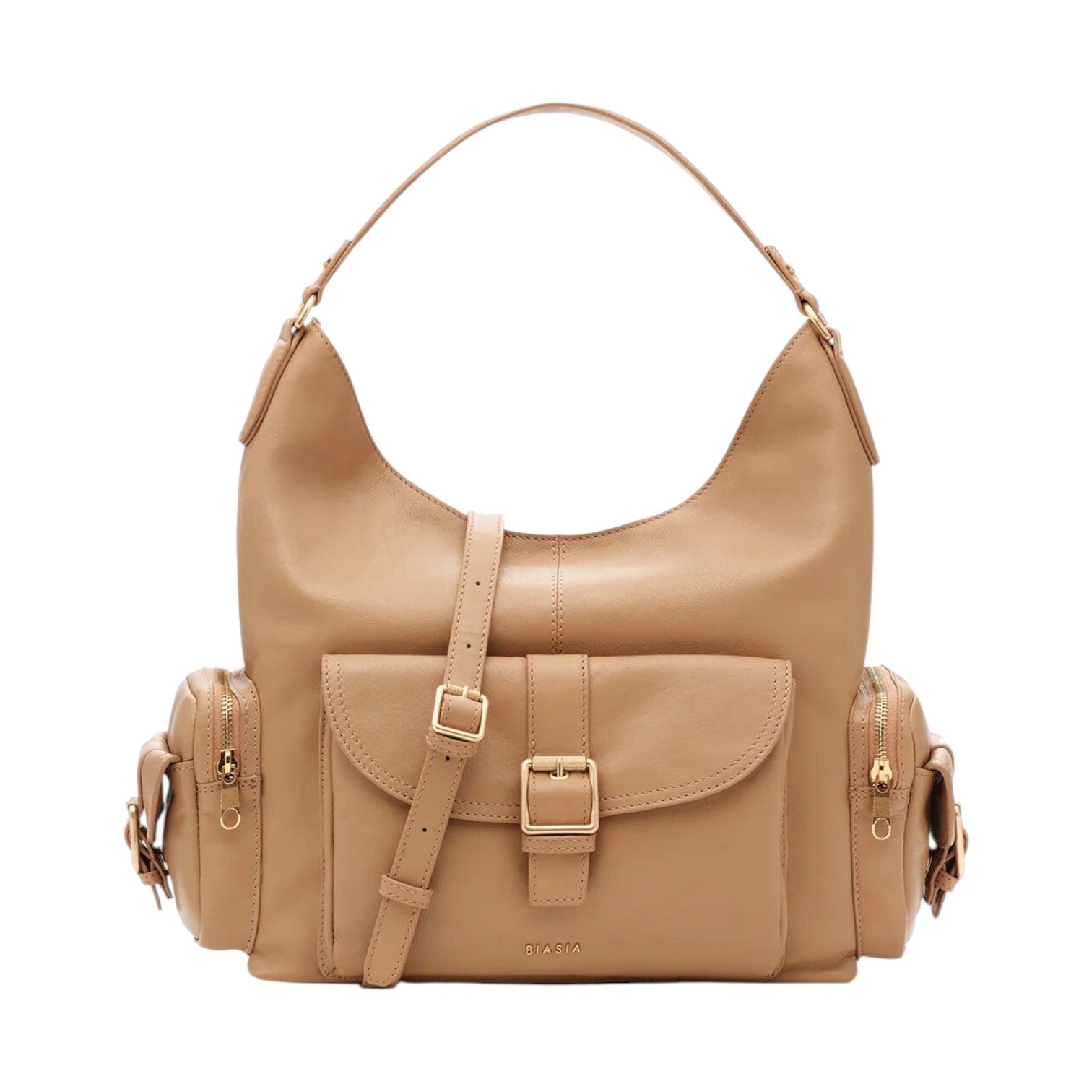 Biasia Borsa a Spalla Donna in Pelle Cammello con Tasca Frontale con Cinturino