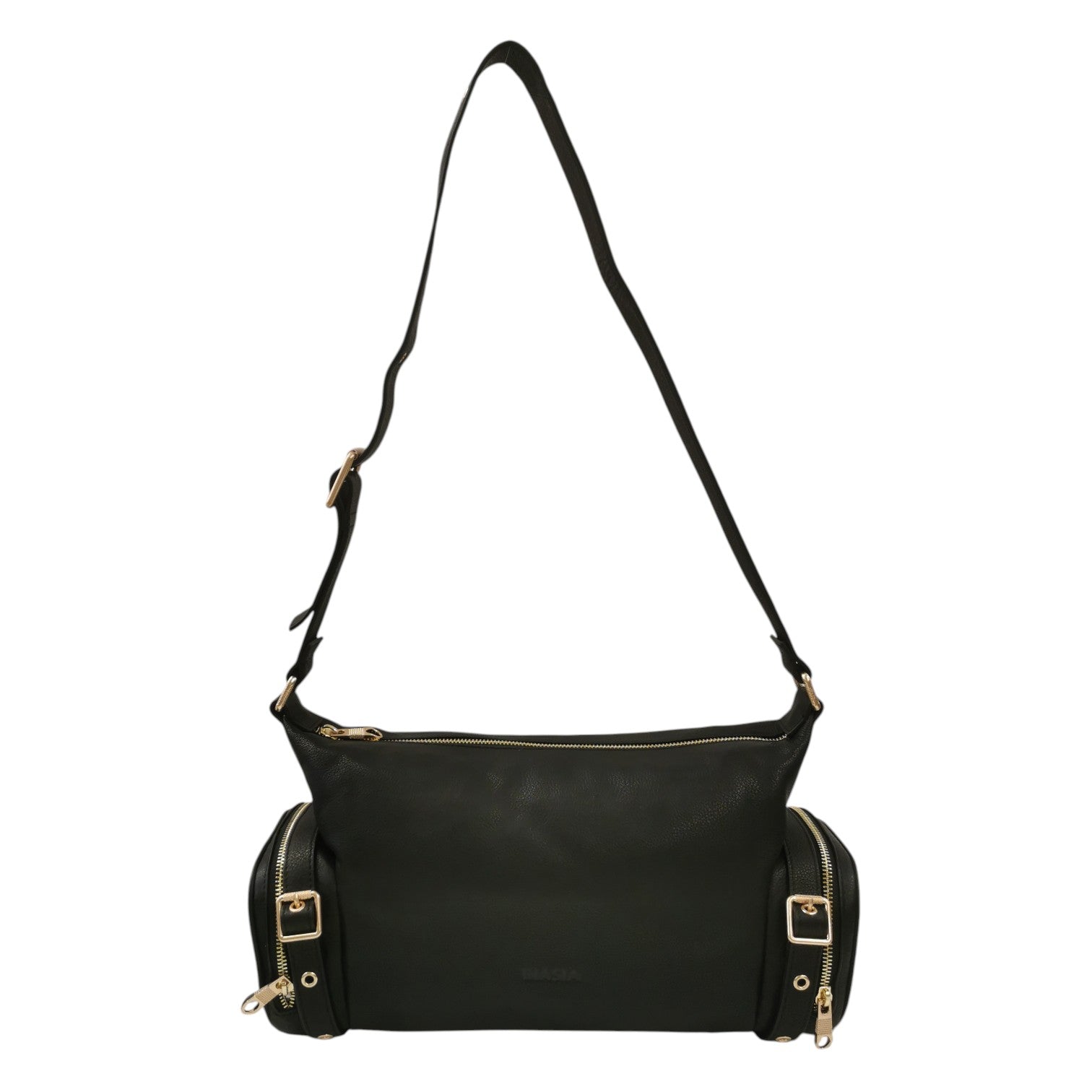 La Borsa a spalla firmata Biasia, realizzata in pelle con tasche laterali per maggiore funzionalità, e scritta logo frontale in basso. Presenta un manico regolabile ed un taschino interno con zip.