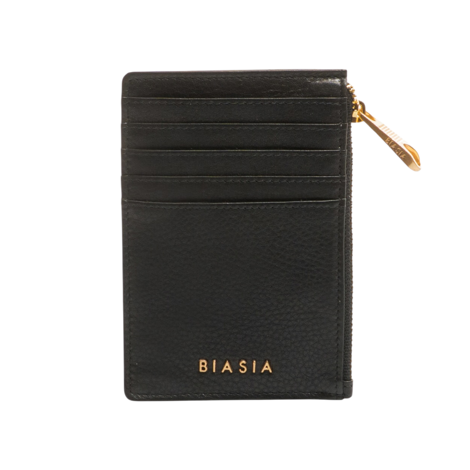 Il Portacarte firmato Biasia, realizzato in pelle con zip è una soluzione elegante e minimal per gli essenziali. Presenta slot per carte anteriori e posteriori a facile accesso, più uno scomparto centrale sicuro per monete o banconote piegate, accessibile con zip personalizzato. Finito con il dettaglio logo biasia in lettering metallico.