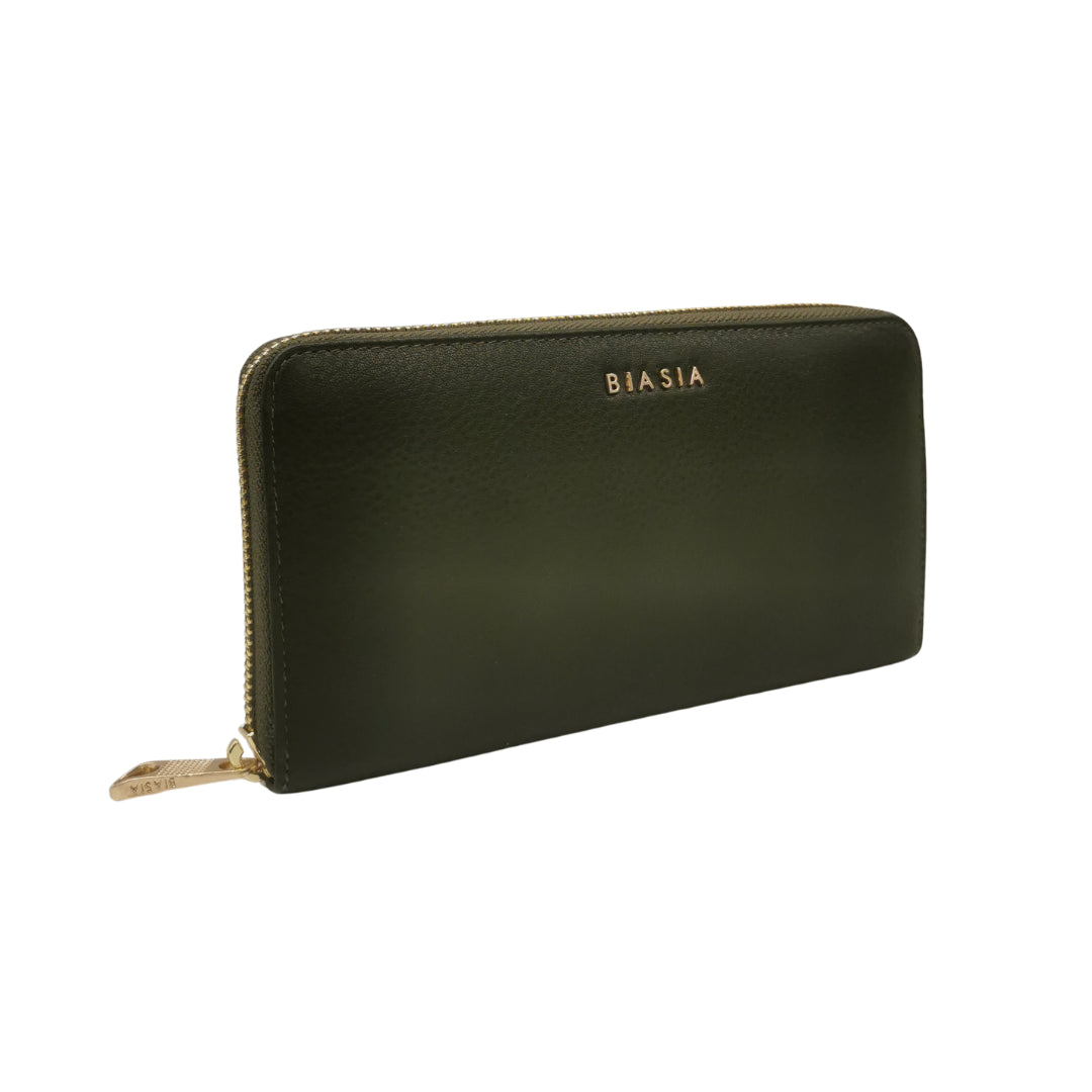 Scopri il Portafoglio firmato Biasia in pelle color Muschio, un piccolo scrigno di stile e praticità! Con la chiusura a cerniera mantiene tutto al sicuro, mentre il logo lettering frontale aggiunge un tocco di personalità. Compatto e spazioso è perfetto per tenere in ordine carte e contanti.