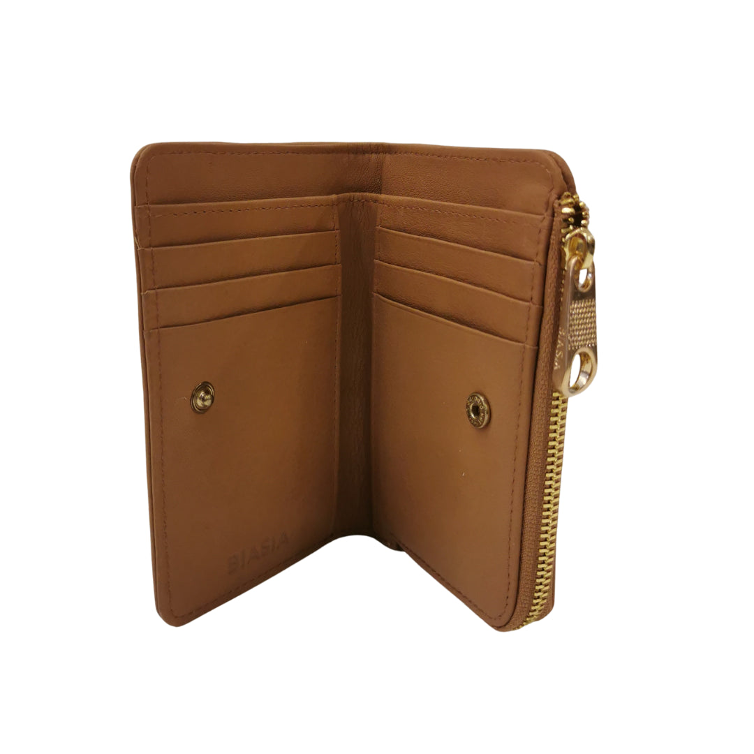 Biasia Portafoglio Piccolo Donna in Pelle Cammello Chiusura con Bottone