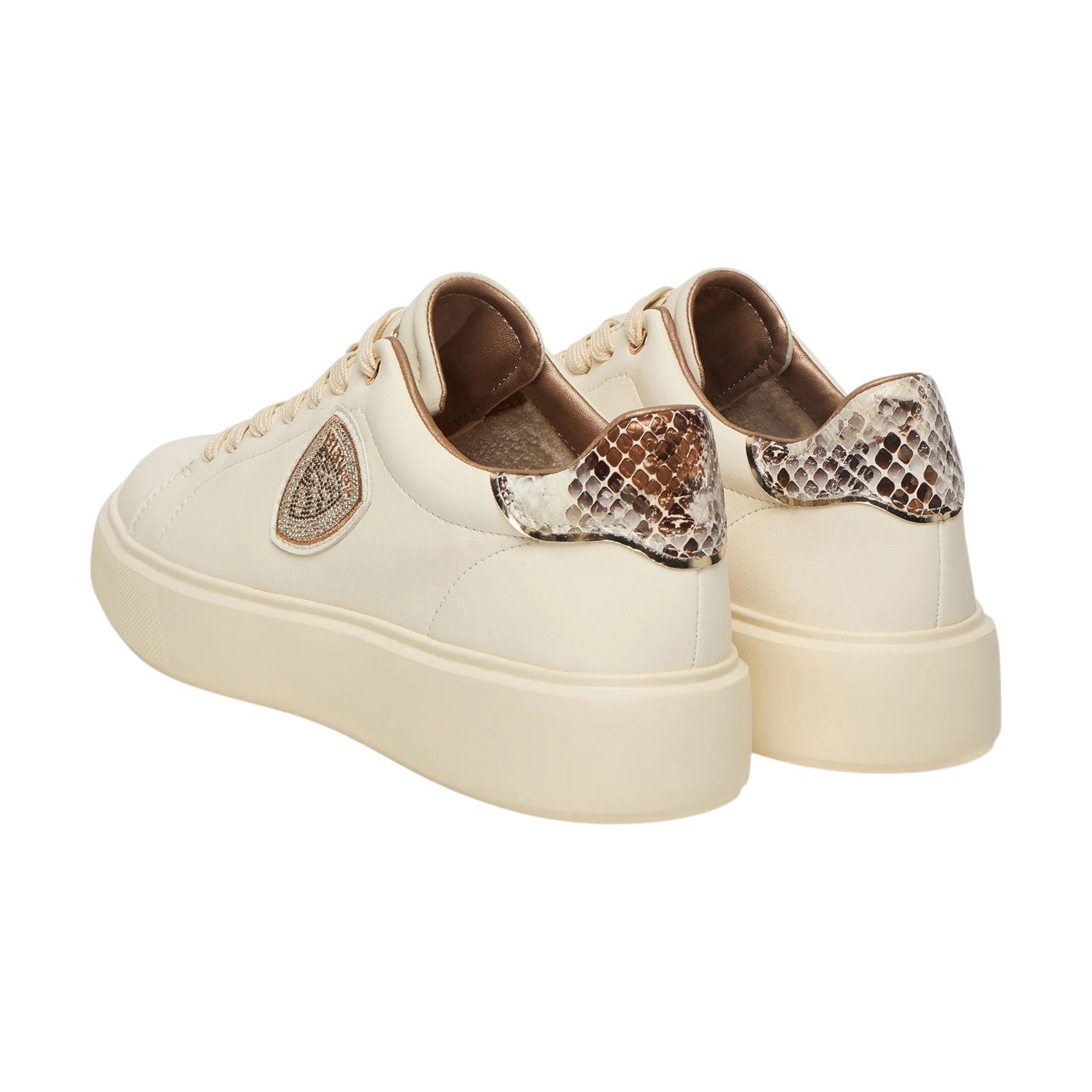 Blauer Sneakers Donna in Pelle Beige Pitone