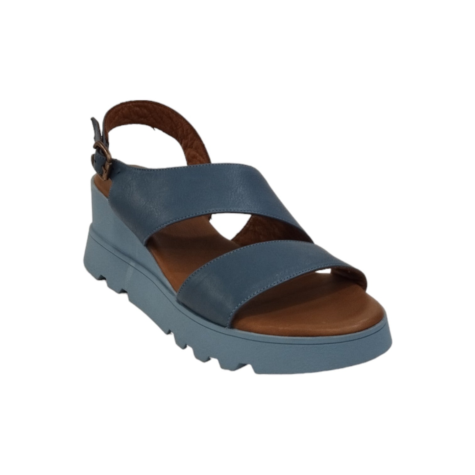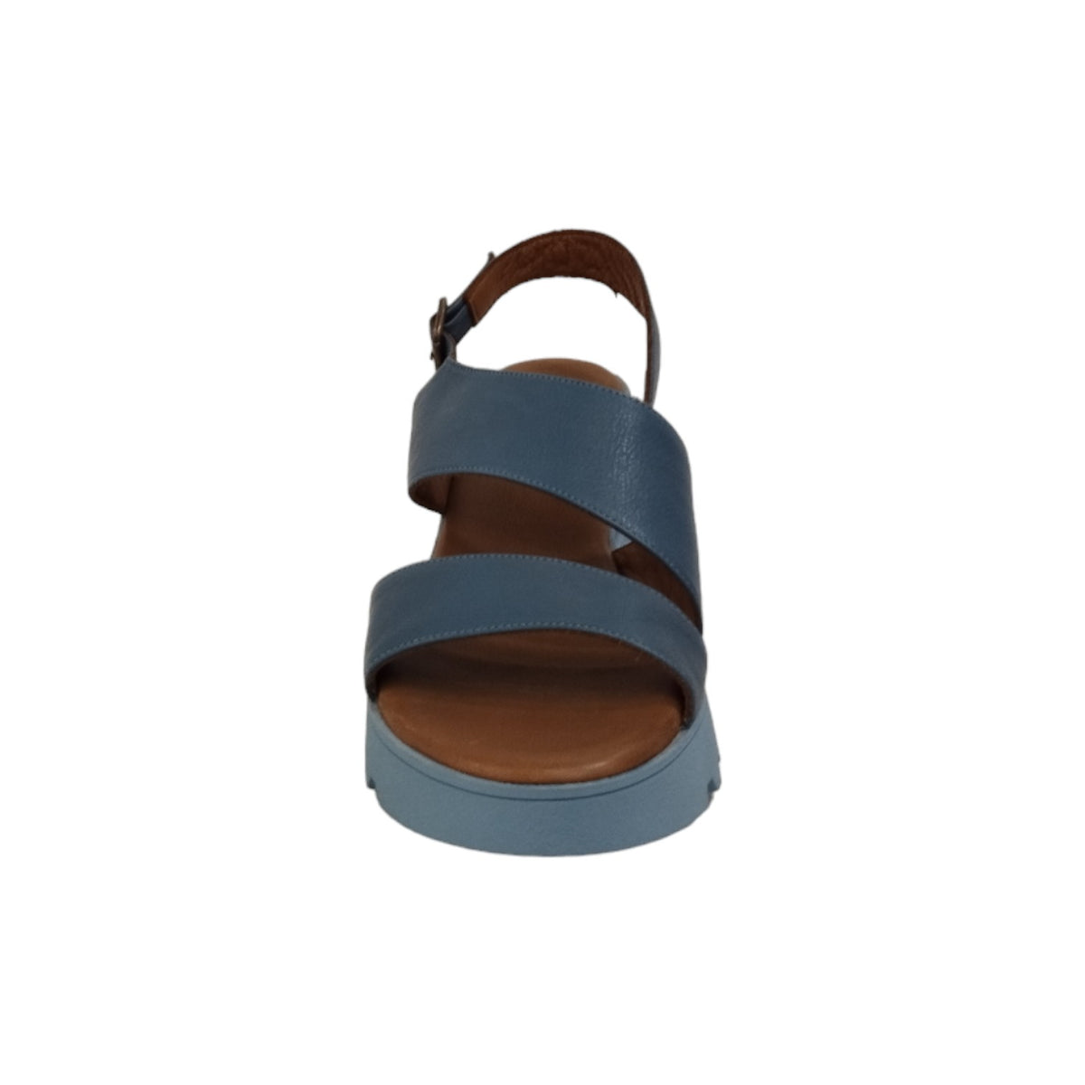 Bueno Sandalo a Due Fasce Blu in Pelle da Donna