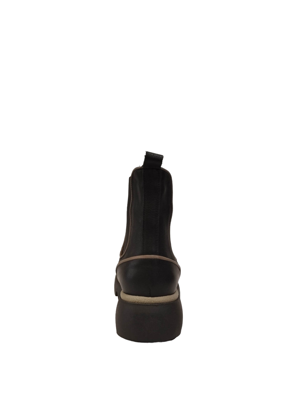Lo Stivaletto firmato Bueno, modello Beatles realizzato in pelle è caratterizzato da inserti in tessuto elasticizzati laterali in tinta, con cuciture a contrasto di colore e fondo chunky combat.