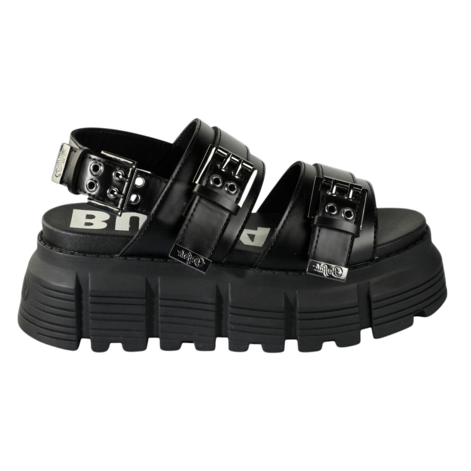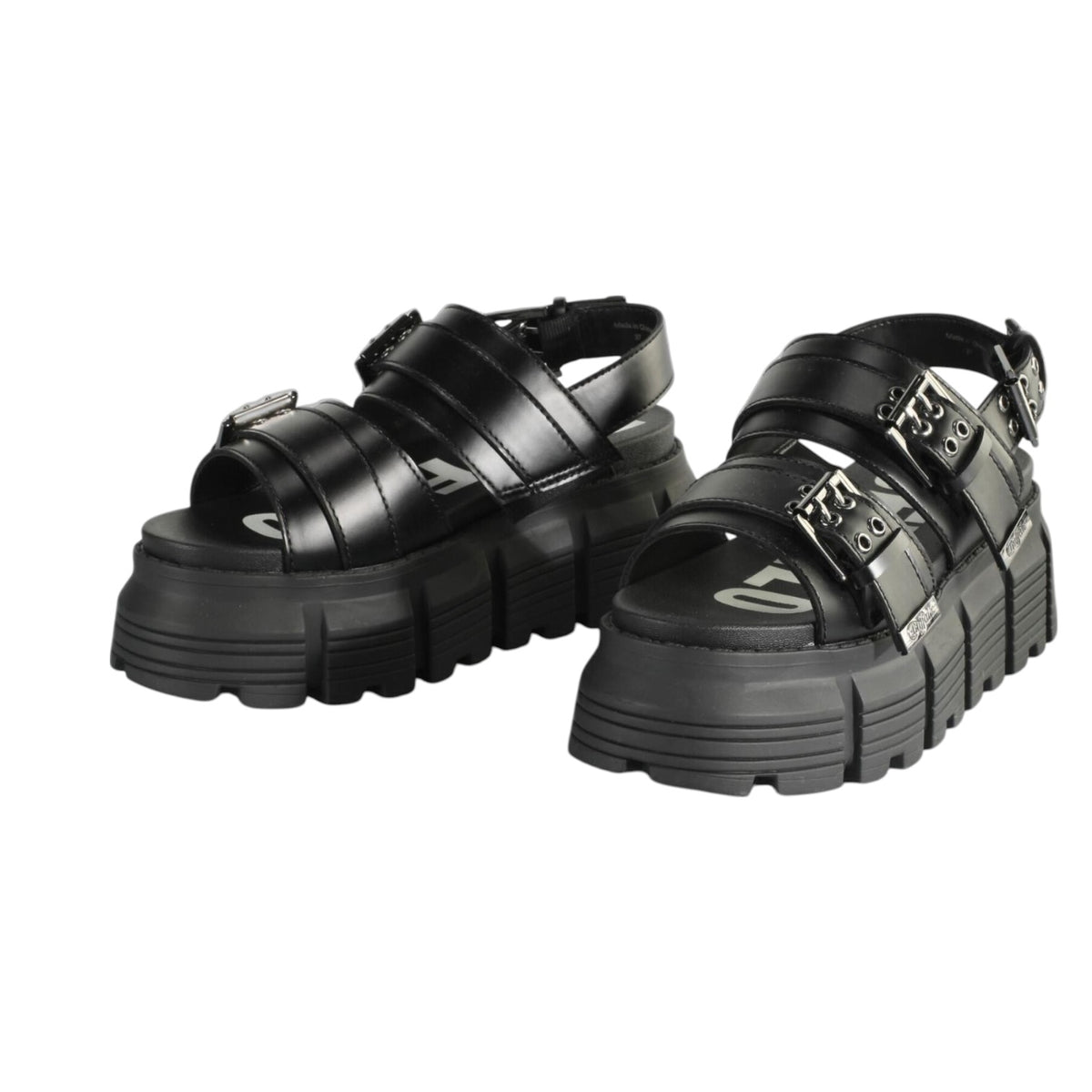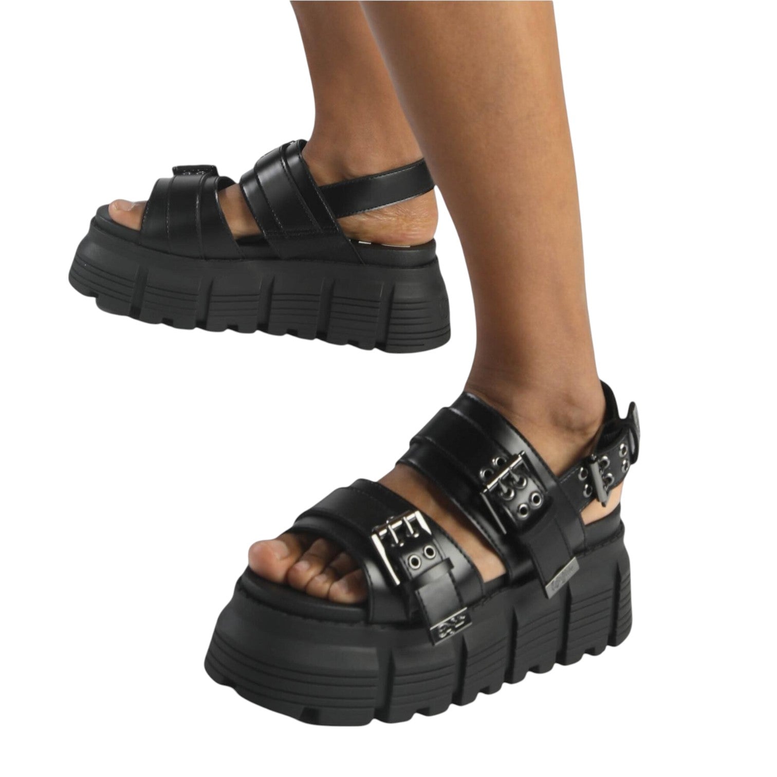 Buffalo Ava Sandalo Nero Platform con Fibbie da Donna