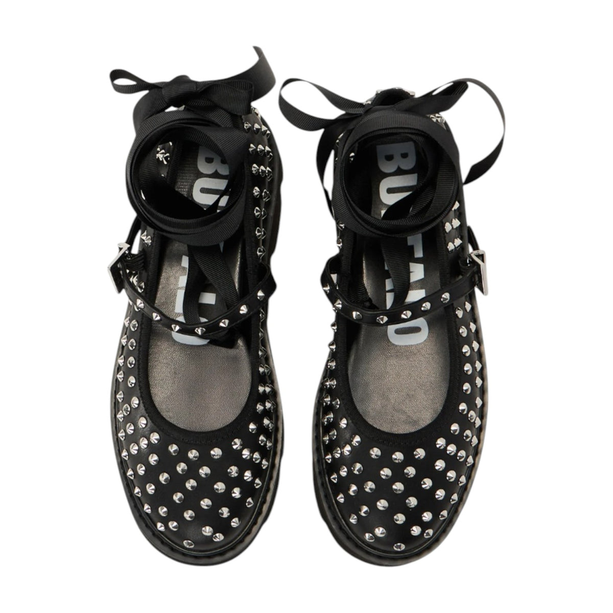 Buffalo Darya Mary Stud Ballerina Nera Platform con Borchie da Donna