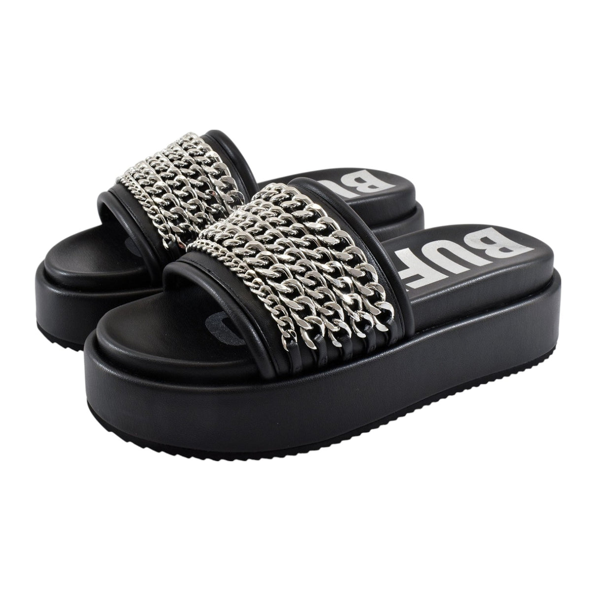 Buffalo Noa Chain Ciabatta Nera Platform con Catene da Donna