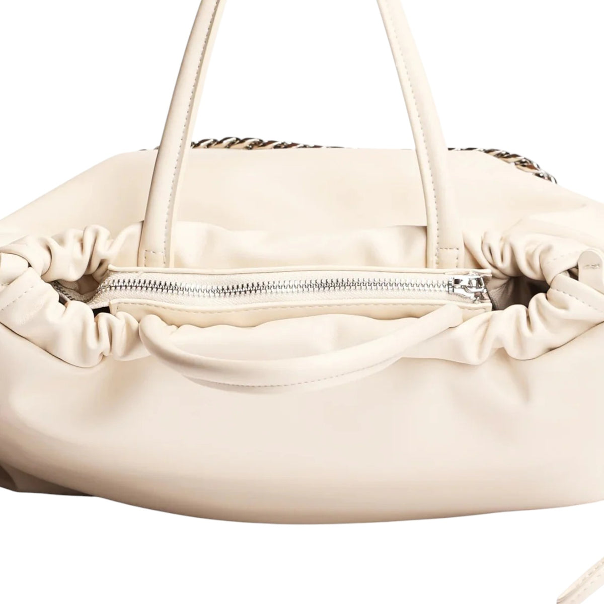 By Byblos Borsa a Mano in Ecopelle Avorio con Catena Argento e Tracolla