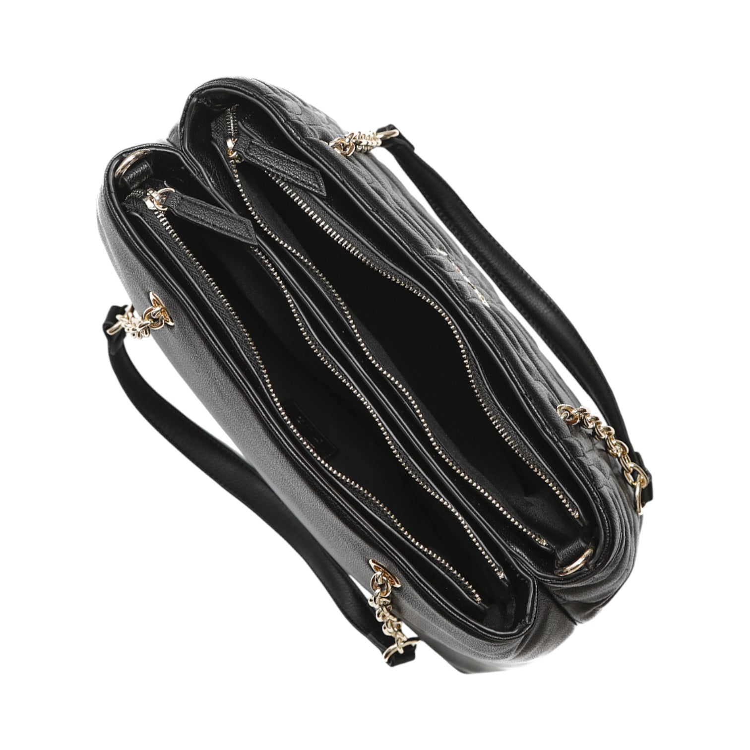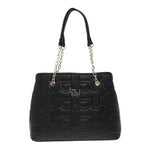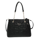 La Borsa a spalla firmata By Byblos, dalla texture morbida qui proposta nella variante nera realizzata in ecopelle, l'interno è foderato in tessuto di cui dispone di doppio scomparto chiuso con zip, ha una doppia portabilità: a spalla grazie ai manici in catena oppure con tracolla regolabile e removibile. Pensato per la donna dinamica che ama distinguersi con stile.