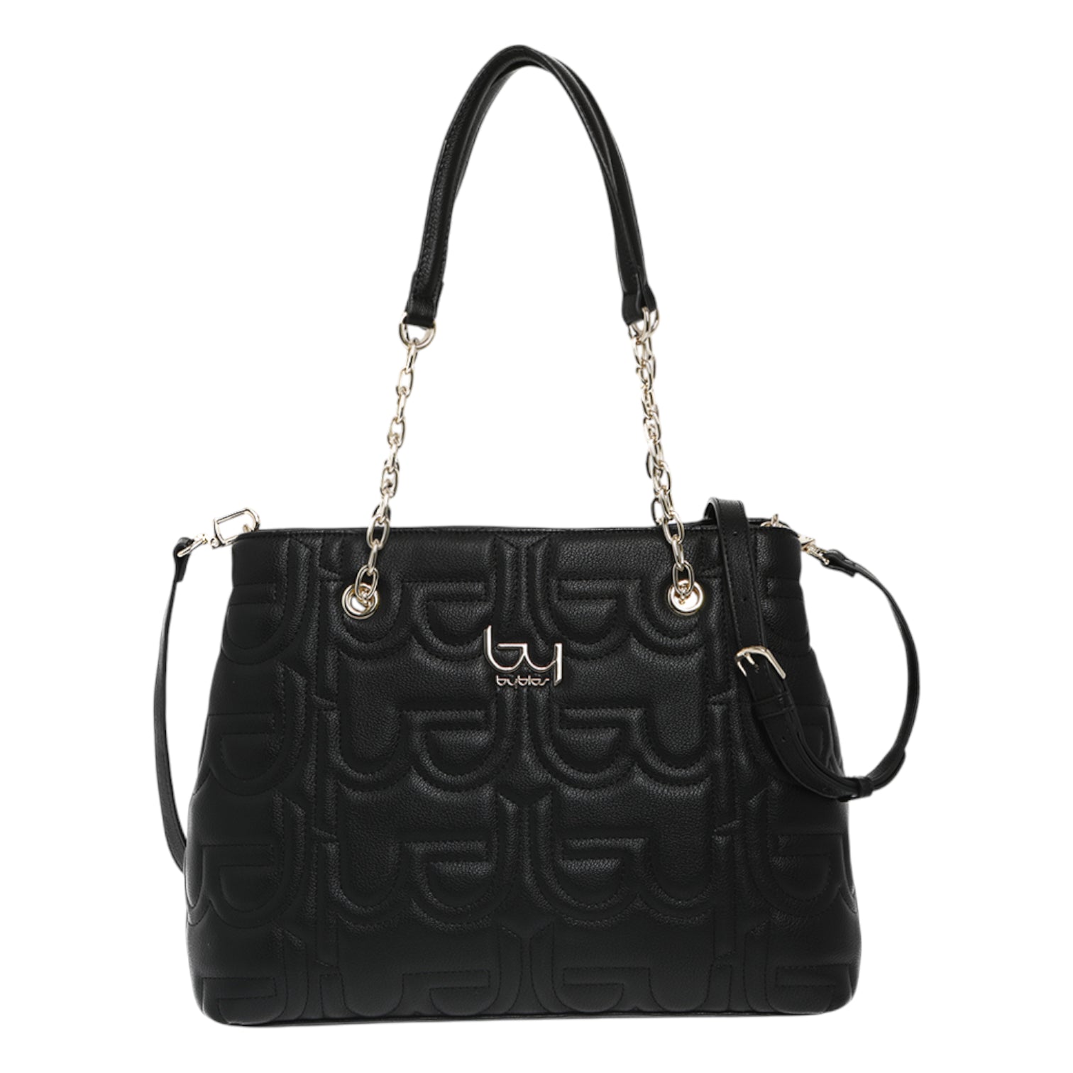 By Byblos Borsa a Spalla Donna in Ecopelle Nera Trapuntata con Doppio Scomparto