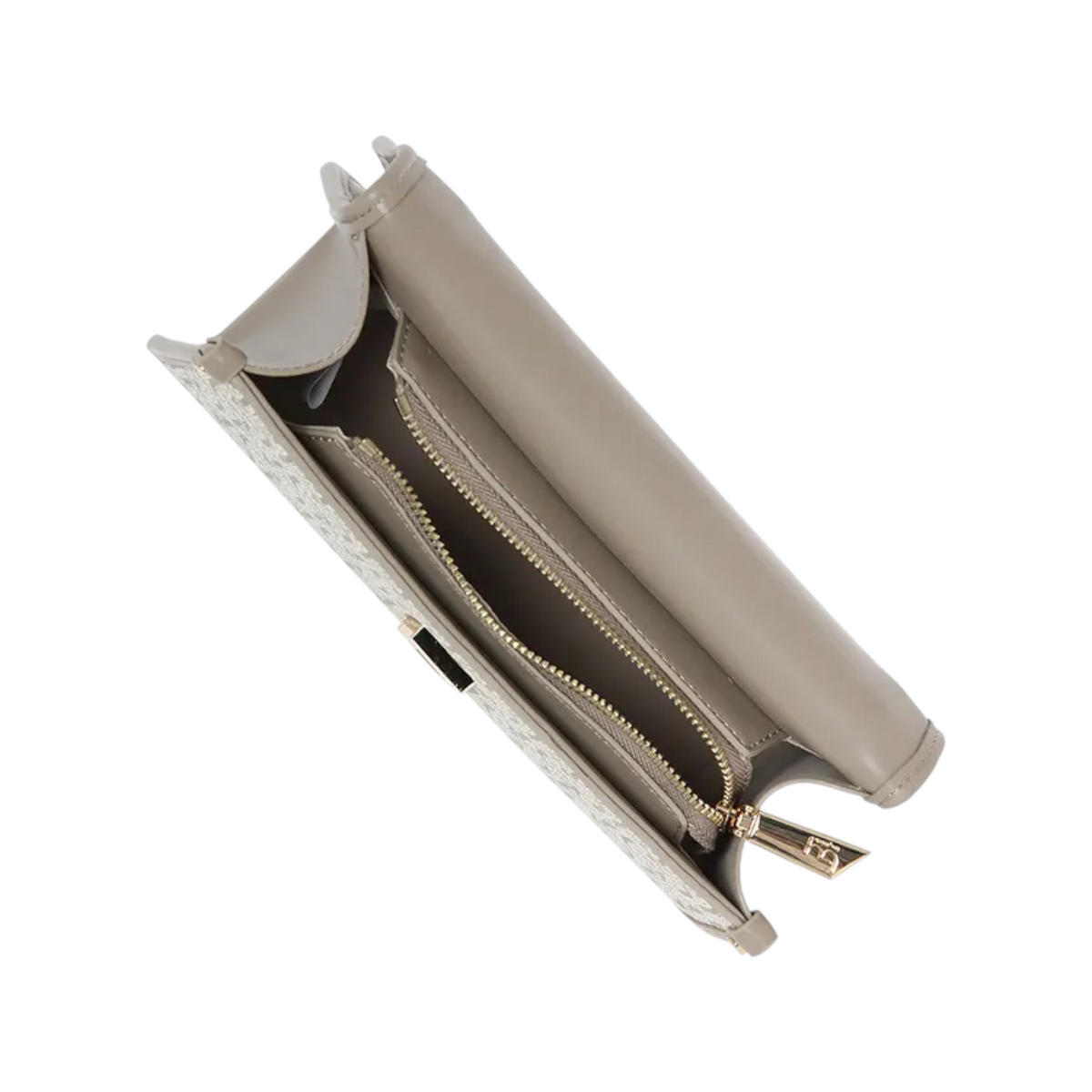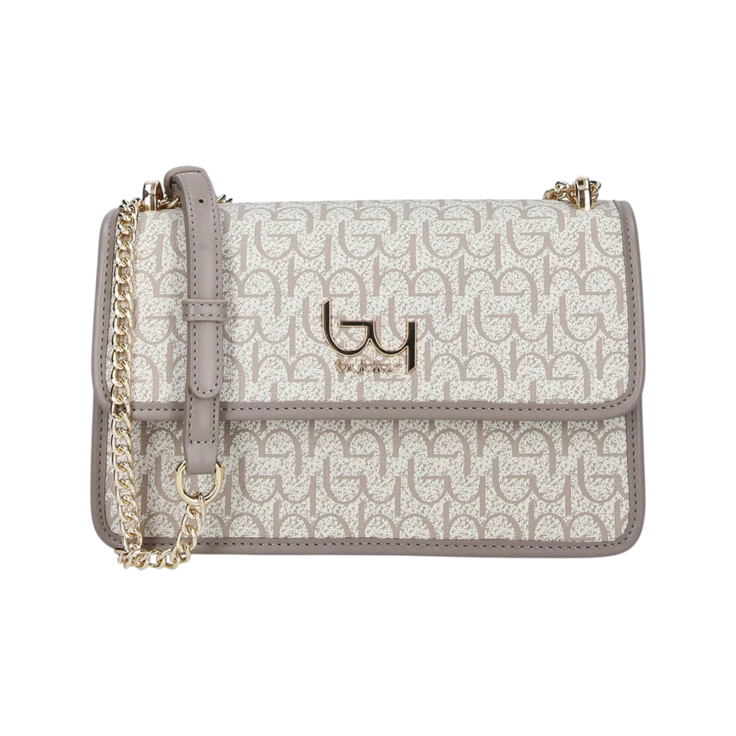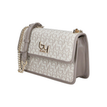 La Borsa a tracolla firmata By Byblos, realizzata in ecopelle nella particolare variante avorio grigio, è dotata di dettaglio catena regolabile a tracolla e da scomparto foderato in tessuto con taschino interno. La stampa logata all over rappresenta l'eleganza sofisticata che ogni donna desidera.