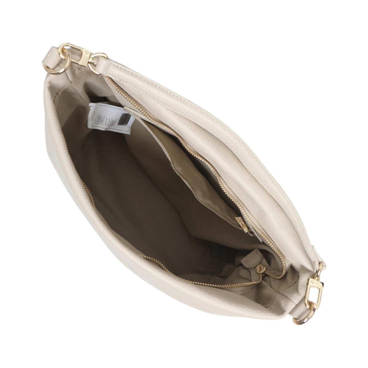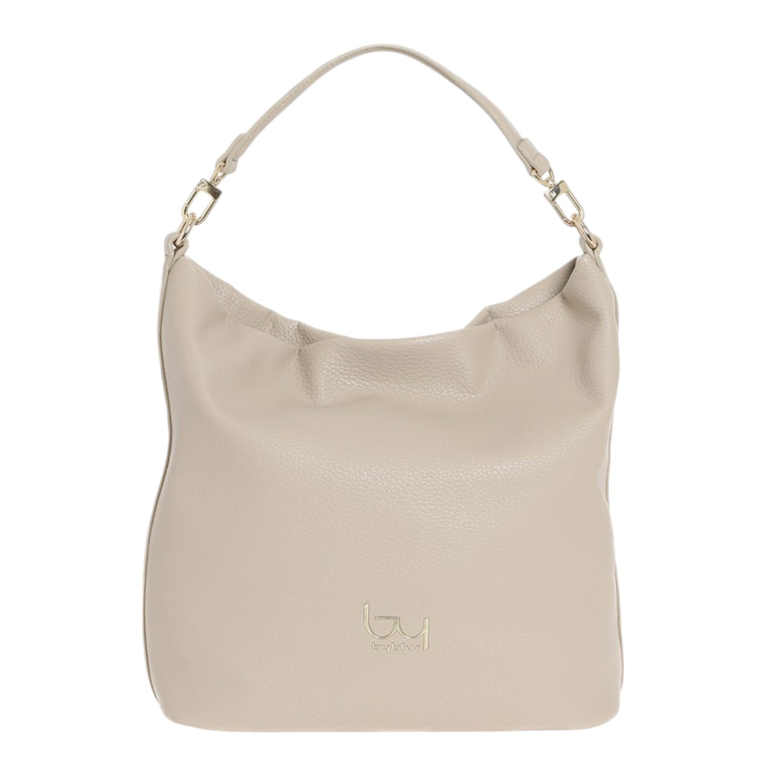 La Sacca firmata By Byblos, realizzata in ecopelle dalla texture morbida è caratterizzata da tracolla regolabile e removibile con manico anch'esso removibile, l'interno è foderato in tessuto di cui dispone di tasca con zip e due aperte.