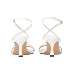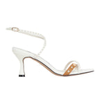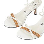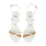By Byblos Sandalo Donna in Ecopelle Bianco Cuoio con Borchiette e Tacco Sottile 80mm