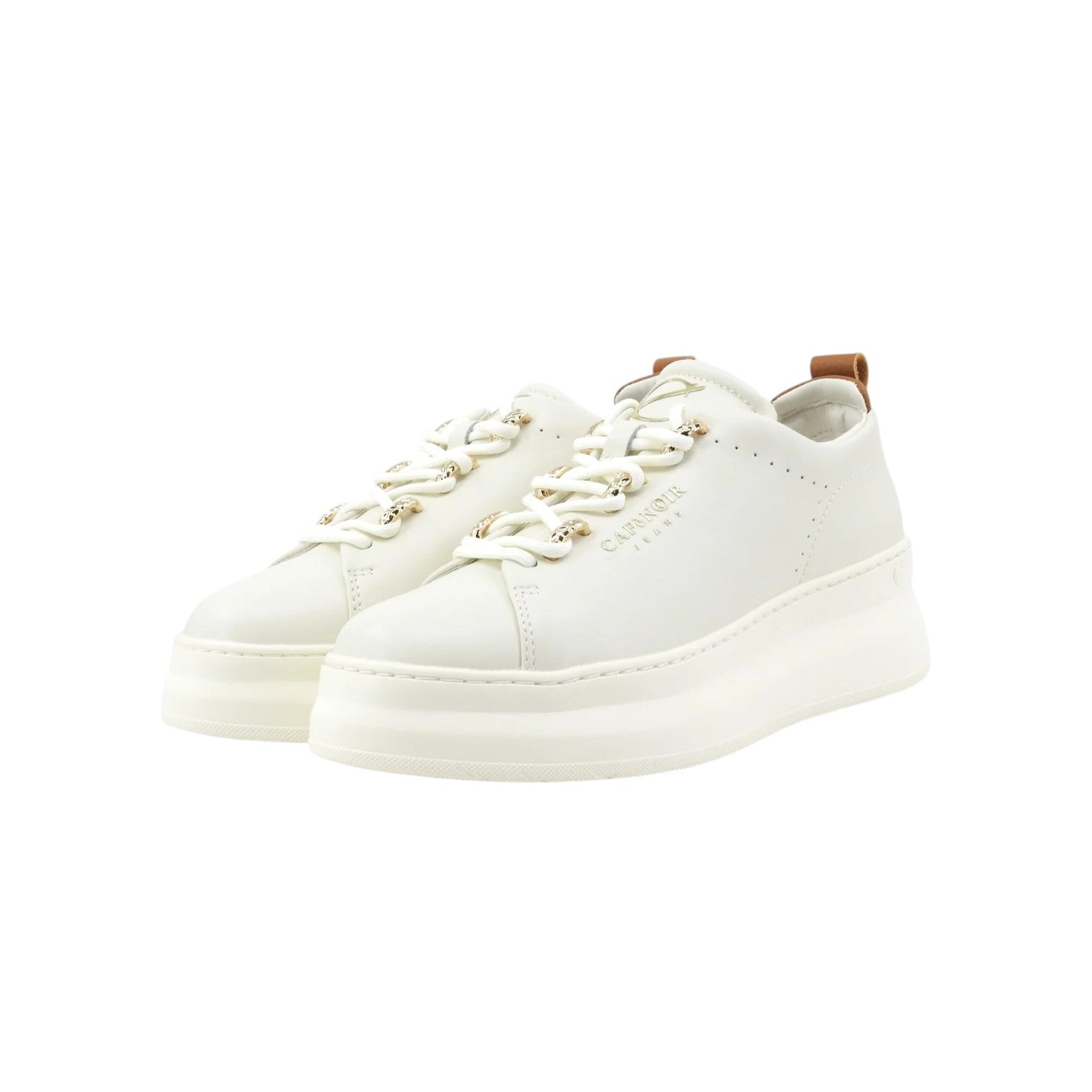 La Sneakers firmata Cafènoir, realizzata in pelle qui proposta nella variante bianca rivestita effetto matte con dettagli oro sui passalacci, presenta una soletta in pelle e una suola alta di 5cm per un look trendy e deciso. Ideali per completare outfit urbani e raffinati, queste sneakers sono la scelta ideale per chi vuole unire stile e praticità in un'unica calzatura.