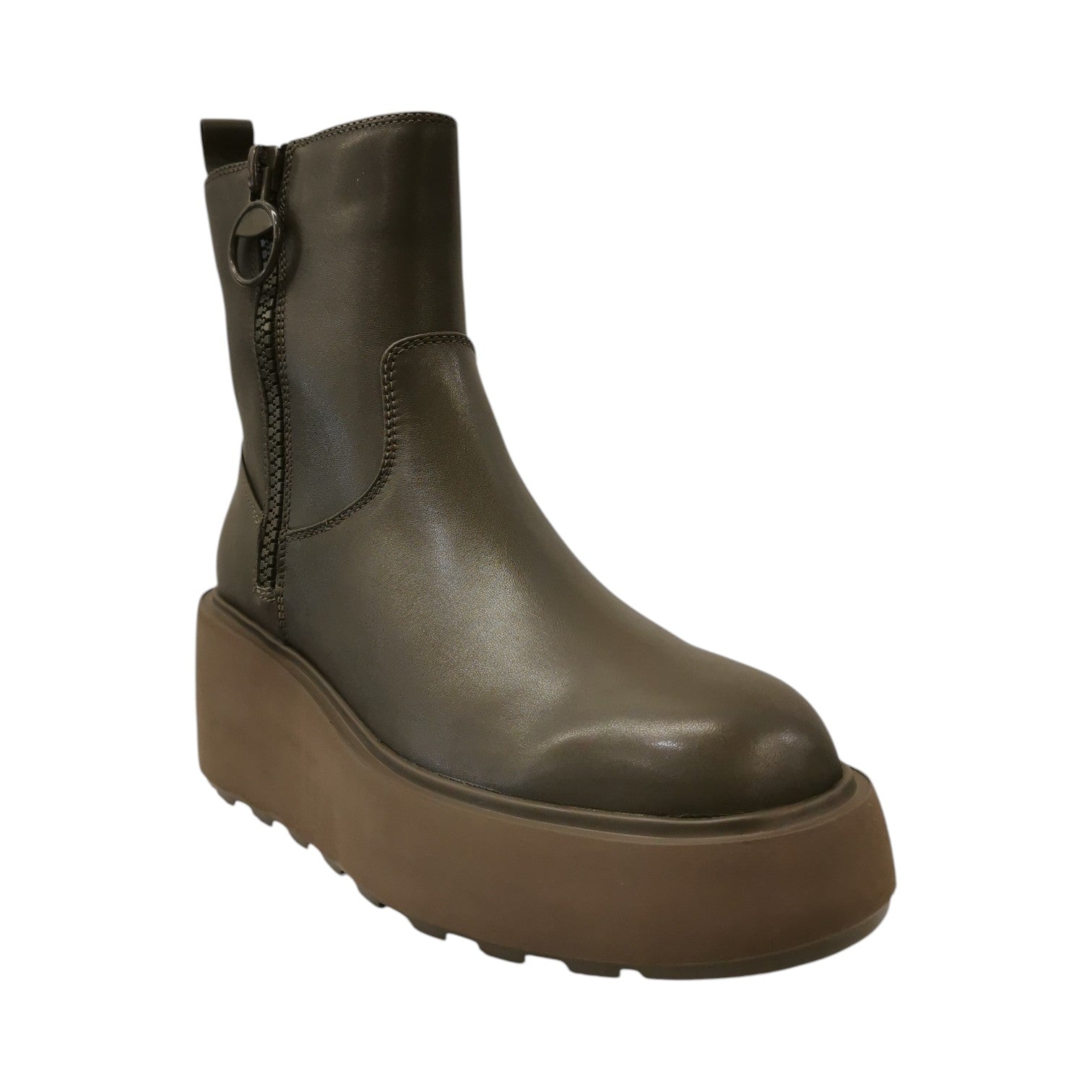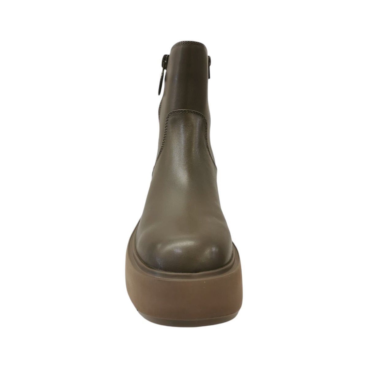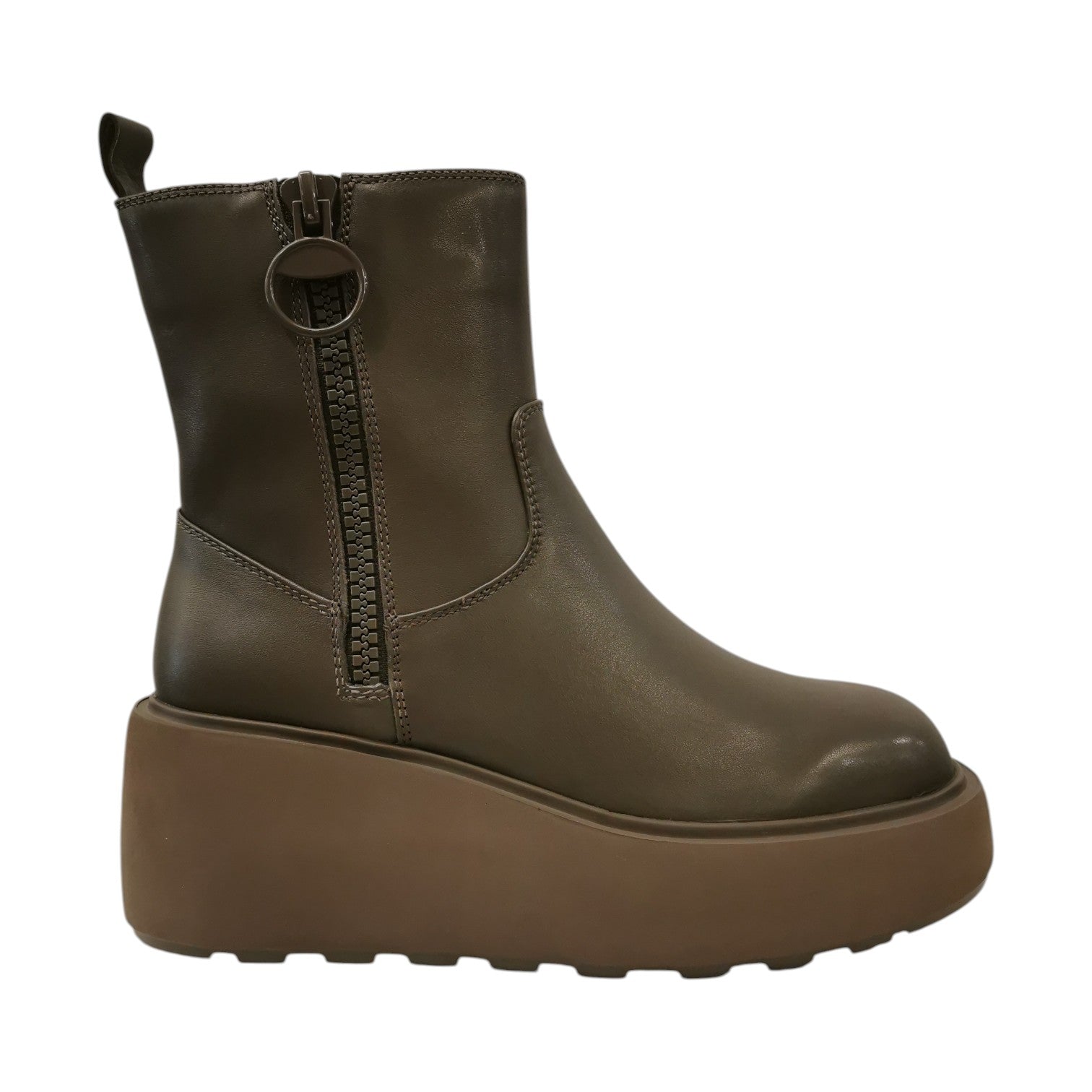CafèNoir Stivaletto Donna in Morbida Pelle Tortora con Zeppa e Doppia Zip