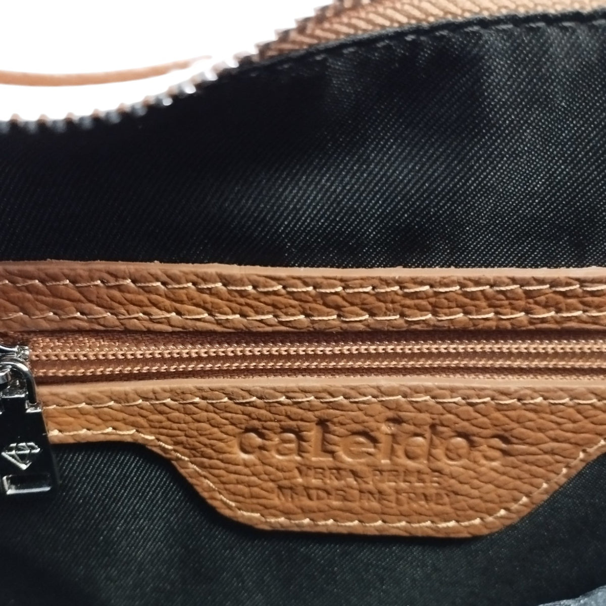 Caleidos Borsa a Spalla Donna in Pelle Cuoio con Doppia Tracolla e Logo Laterale