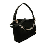 Caleidos Borsa a Spalla Donna in Camoscio e Pelle Nera con Catena Oro e Manico Regolabile