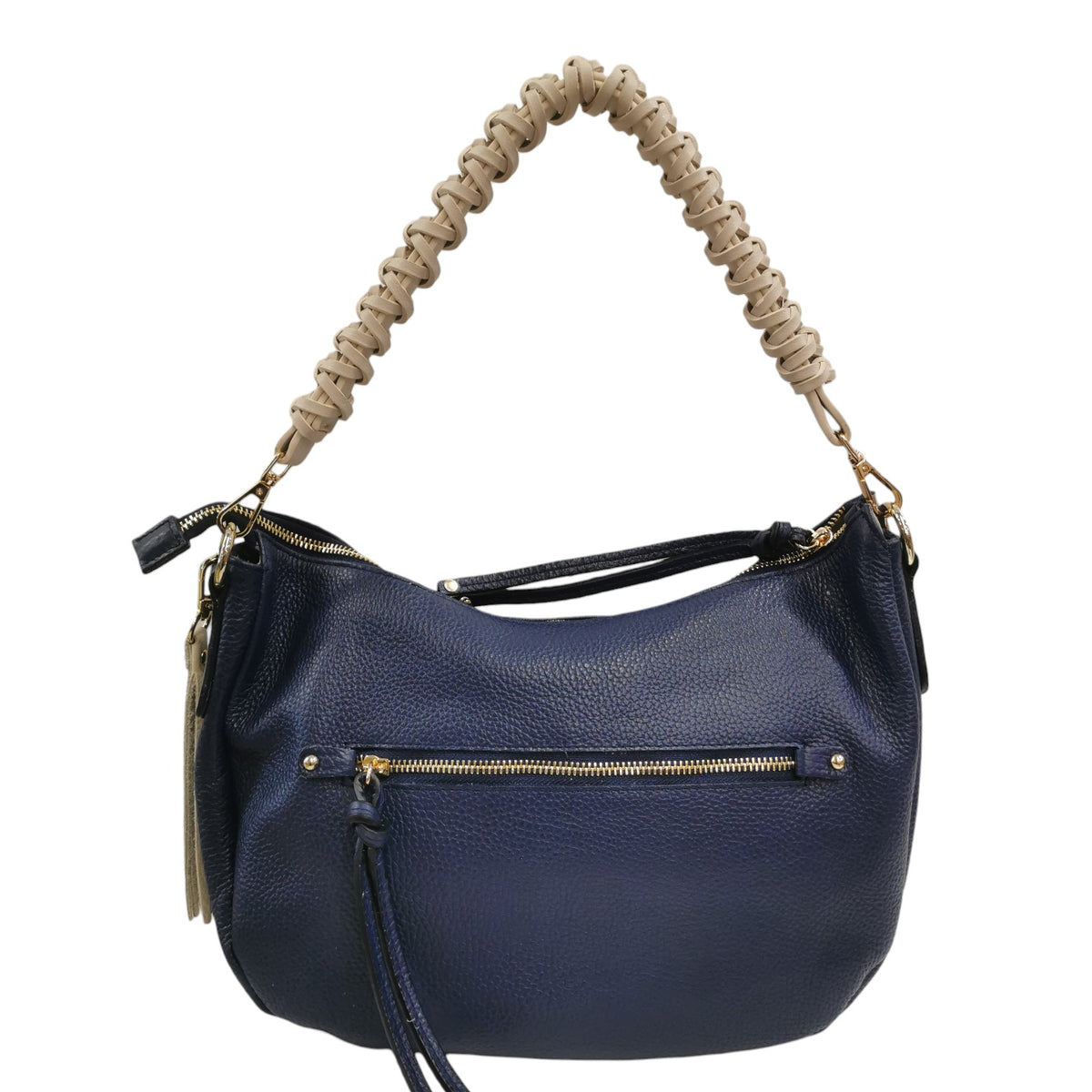 Caleidos Borsa a Spalla Donna in Pelle Blu Beige con Manico Intrecciato e Tracolla