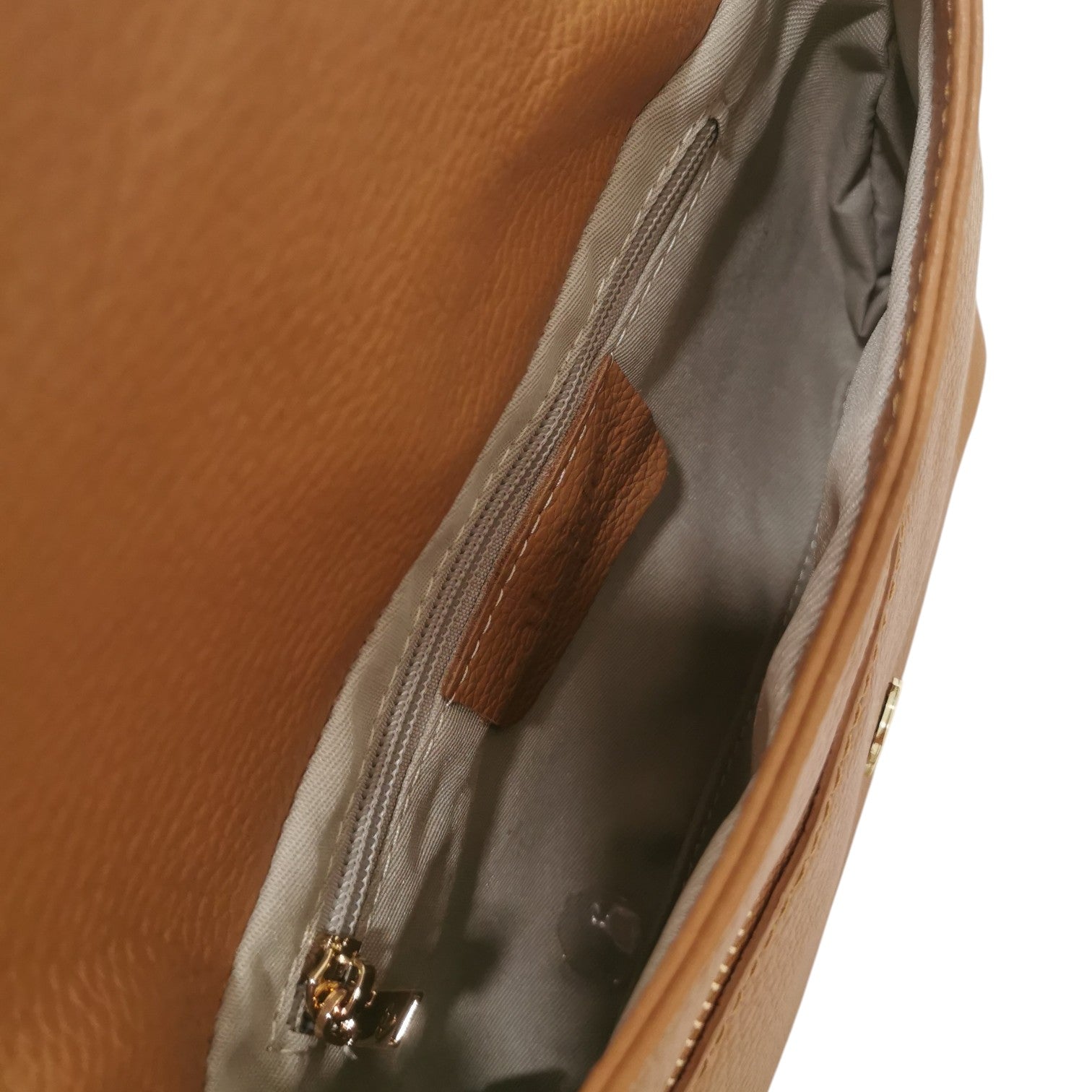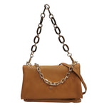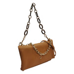 Caleidos Borsa a Spalla Donna in Pelle Caramello con Doppia Catena e Tracolla con Bottoncino