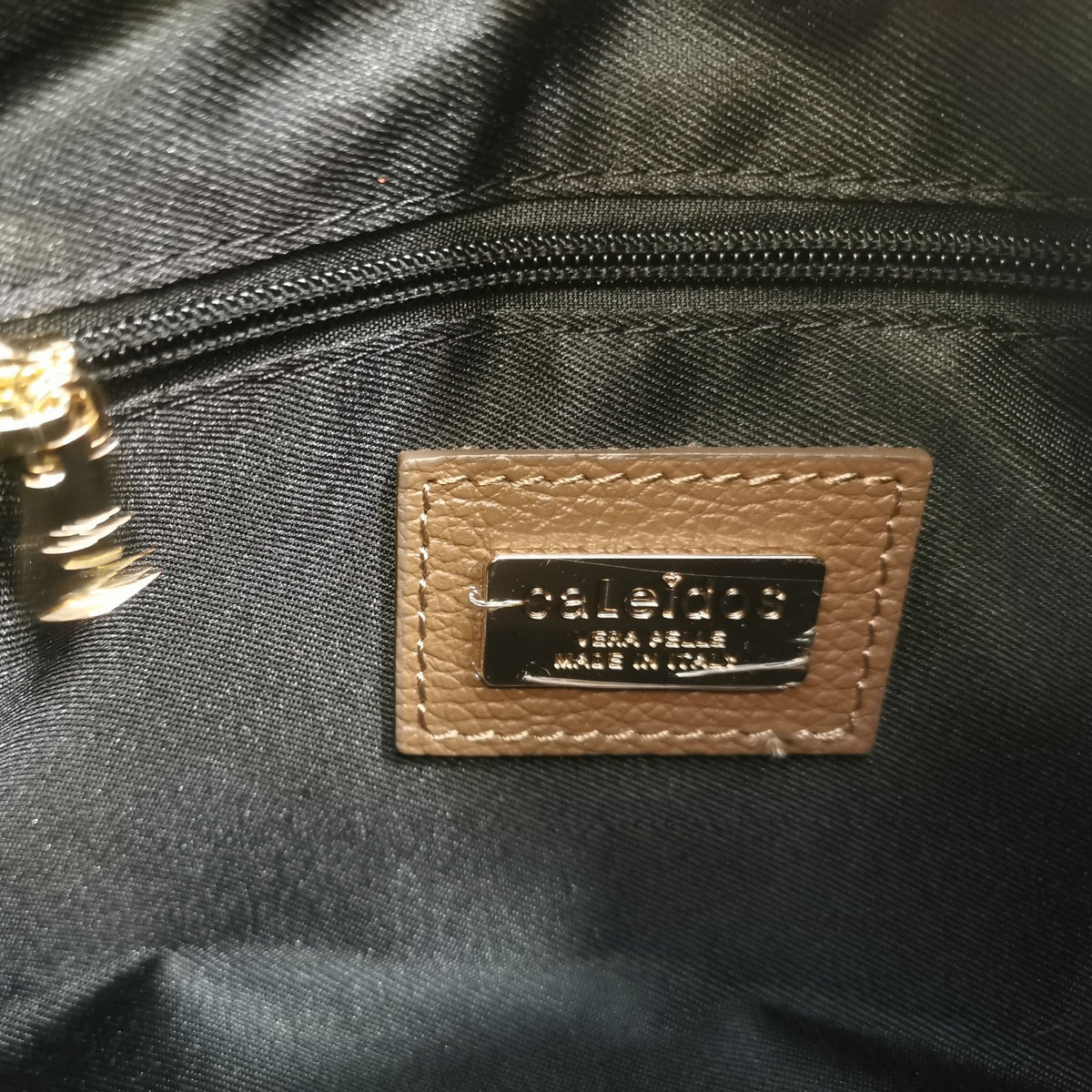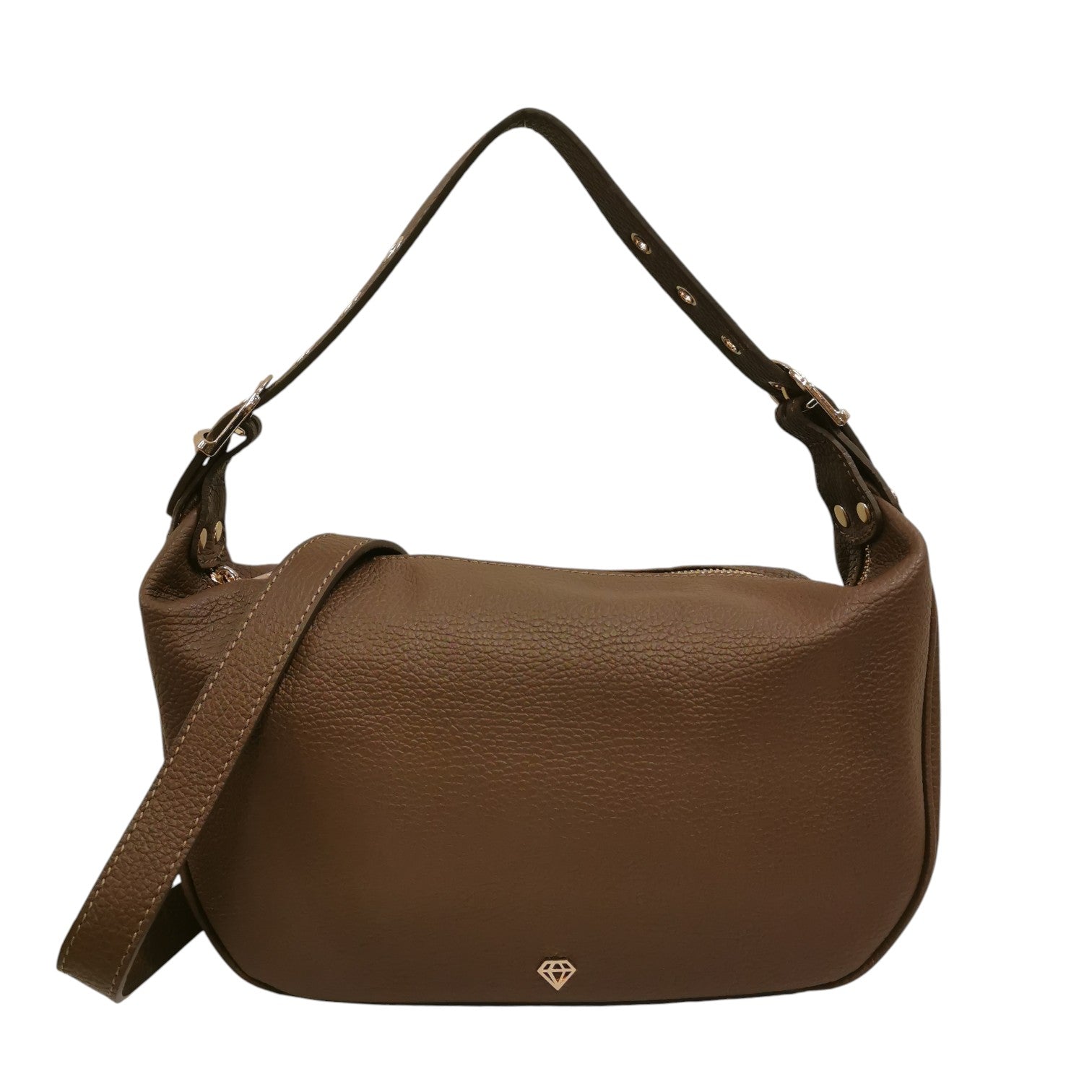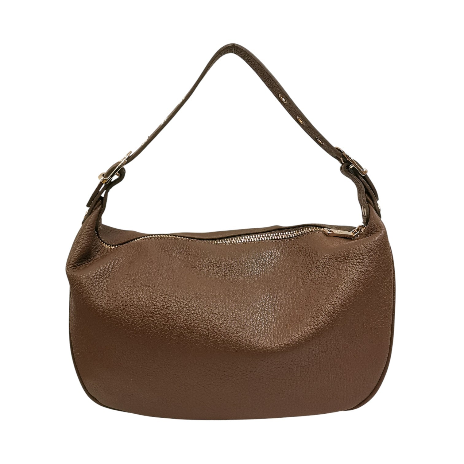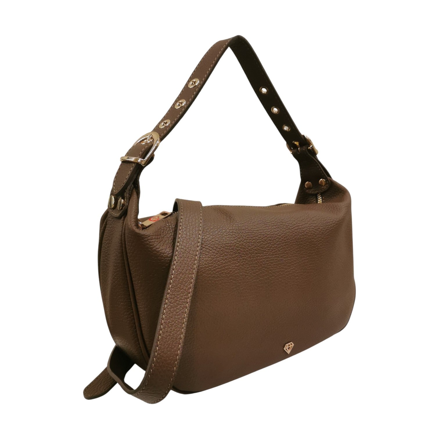 Caleidos Borsa a Spalla Donna in Pelle Martellata Castoro con Tracolla e Manico Regolabile