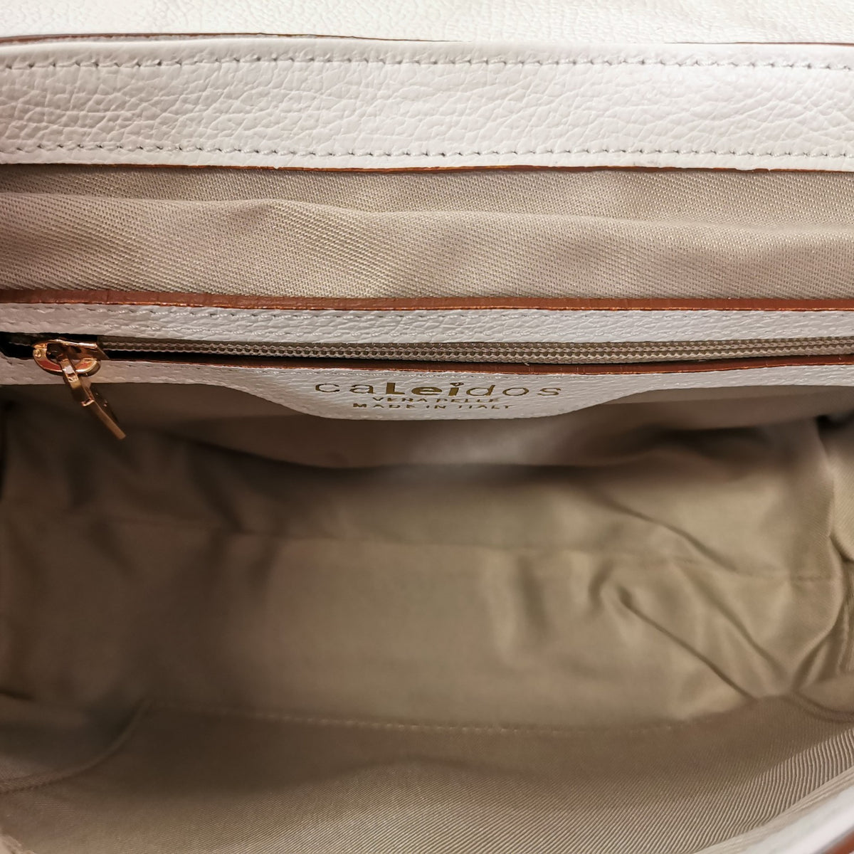 La Borsa a tracolla firmata Caleidos, realizzata in vera pelle qui proposta nella variante bianca è caratterizzata da comoda tracolla per portarla a spalla e da logo frontale in metalleria color oro, l'interno è suddiviso in doppio scomparto di cui quello centrale chiuso con zip. Un accessorio indispensabile per chi cerca design raffinato e praticità quotidiana.