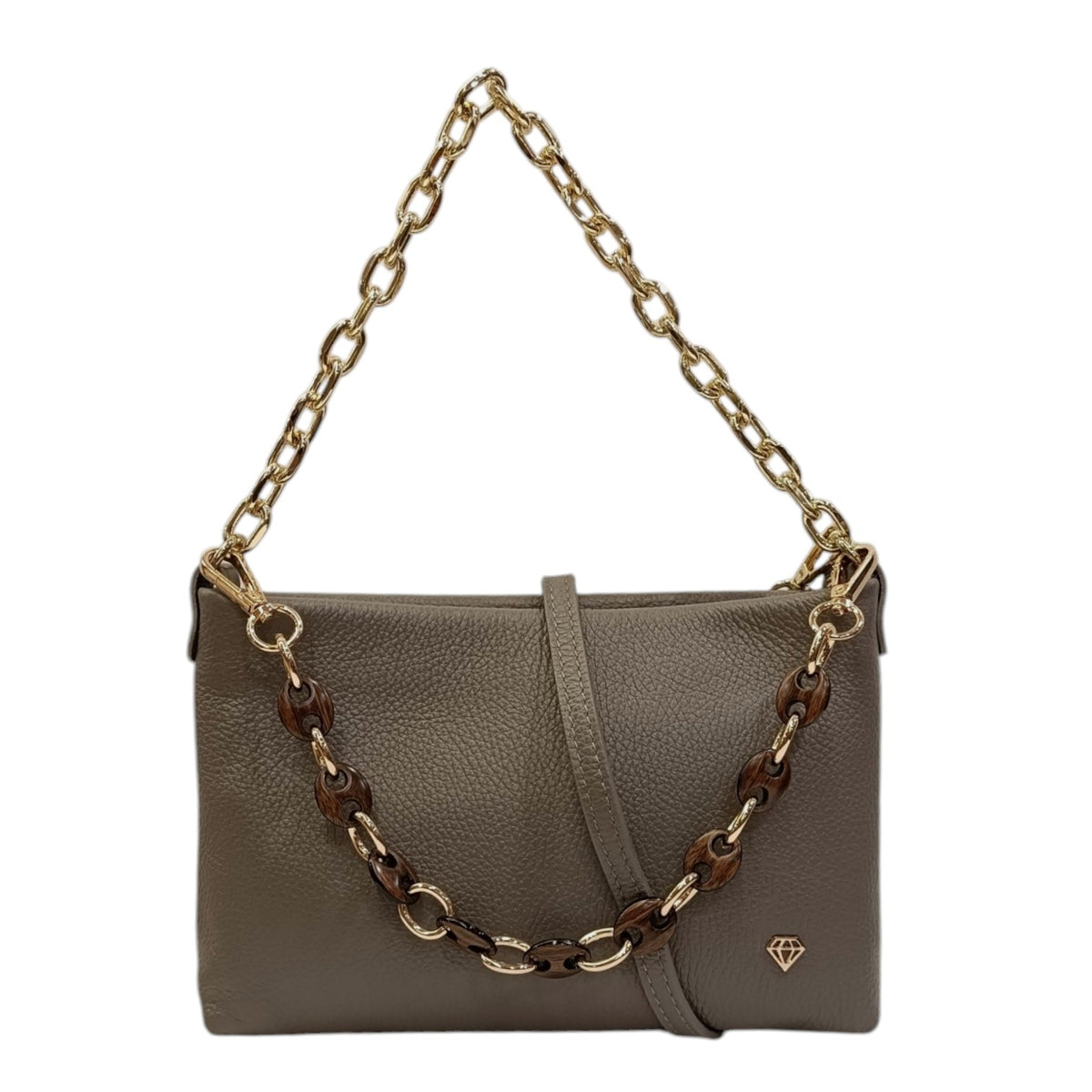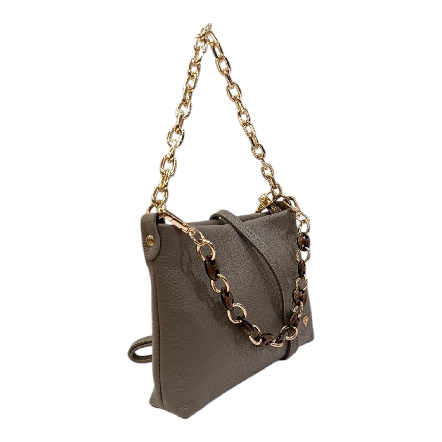 Caleidos Borsa a Spalla Donna in Pelle Nebbia con Doppia Catena e Tracolla