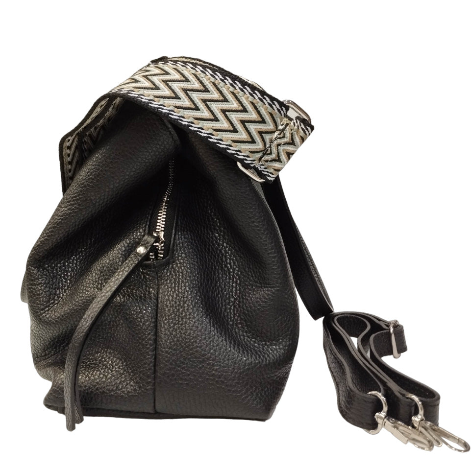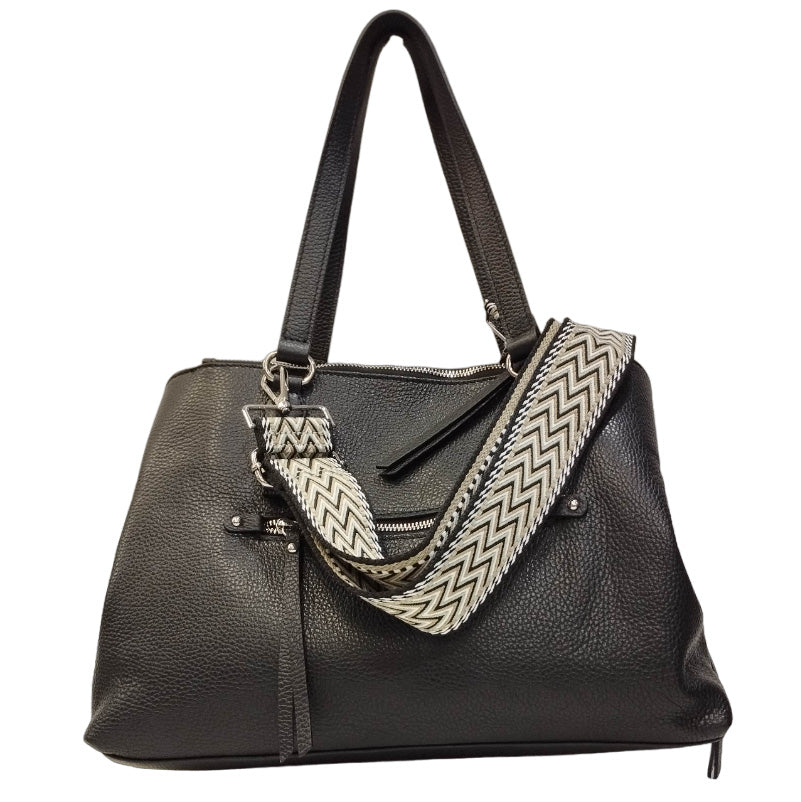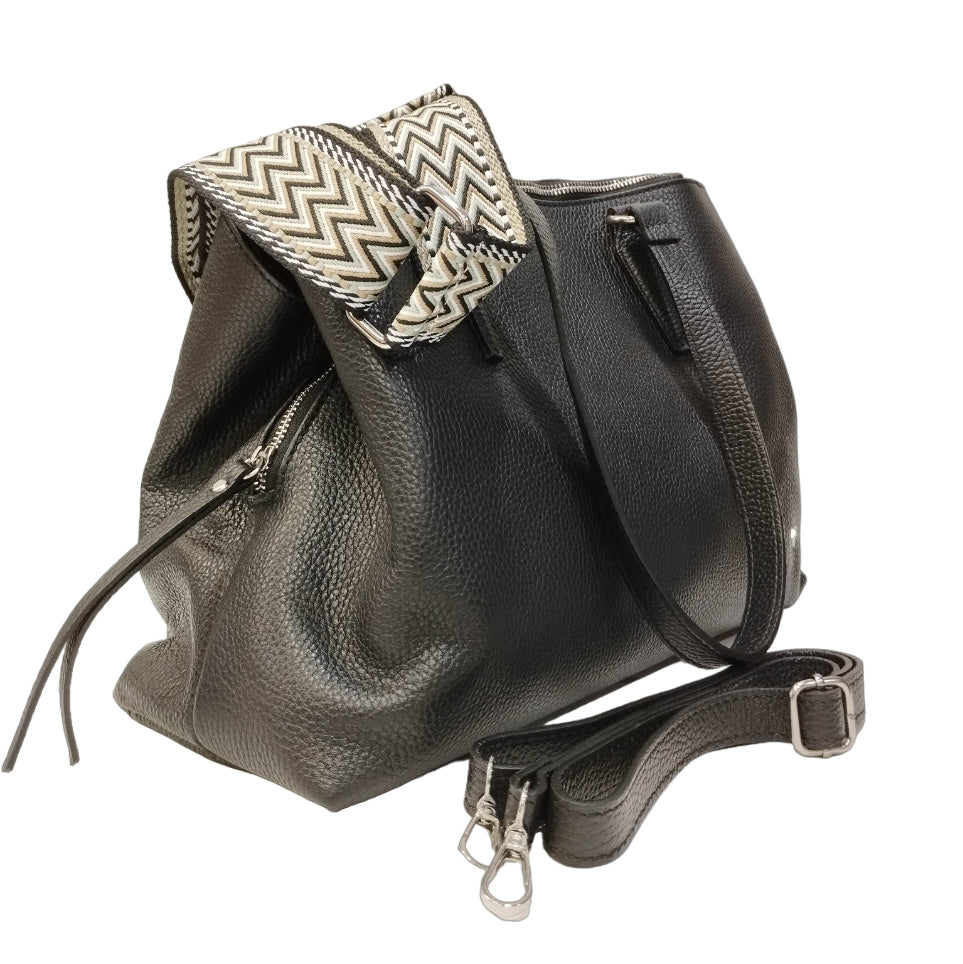 Caleidos Borsa a Spalla Donna in Pelle Nera con Doppia Tracolla