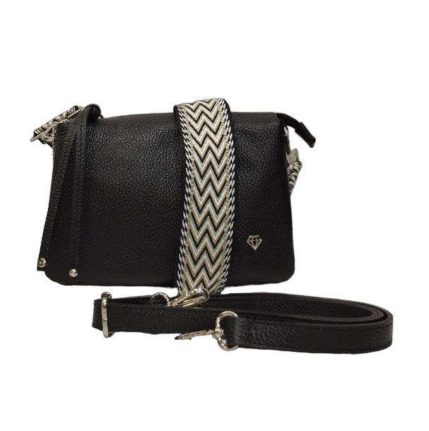 Caleidos Borsa a Tracolla Donna in Pelle Nera con Tre Scomparti