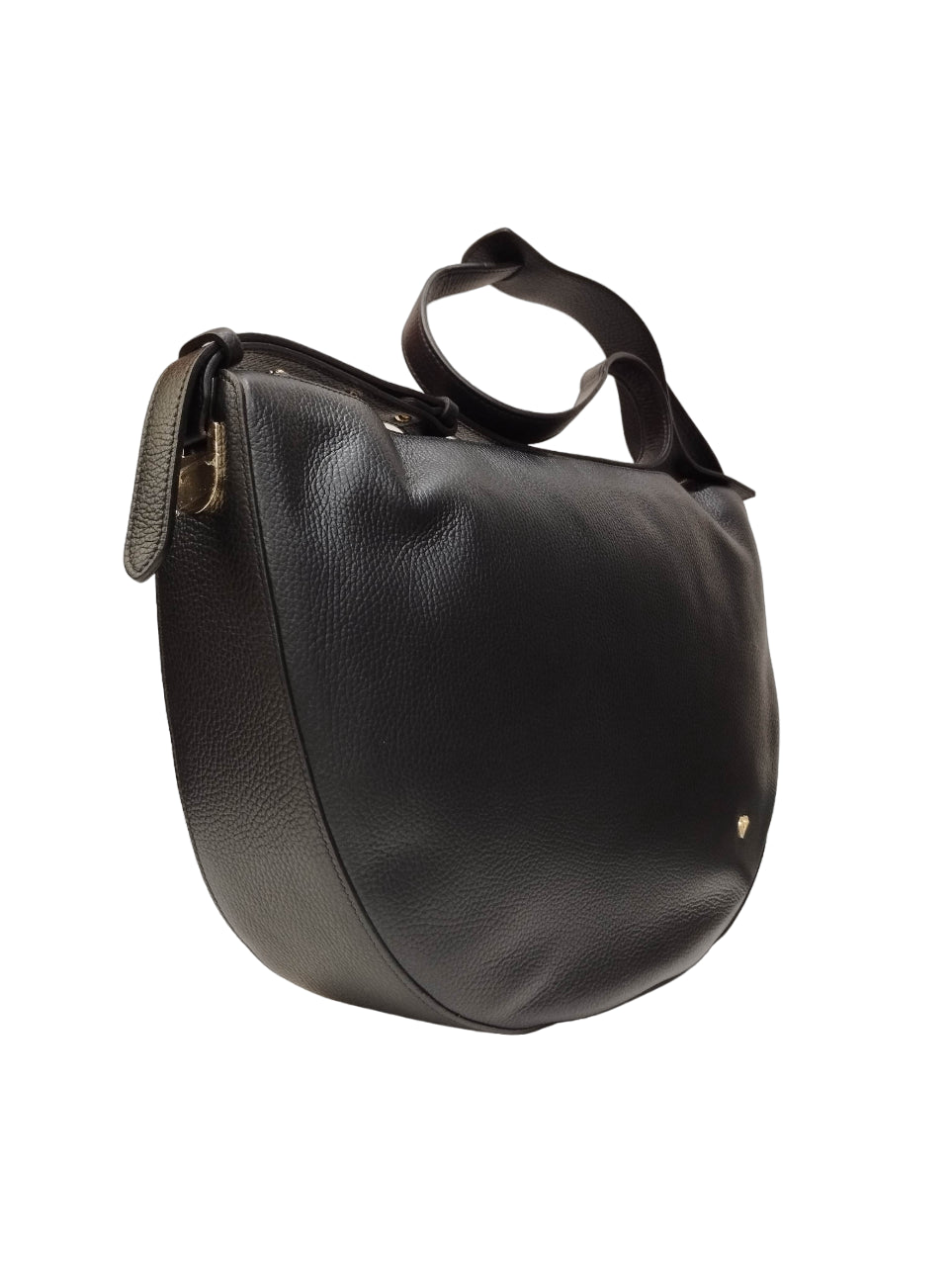 Caleidos Mezza Luna Donna in Pelle Nera con Logo Laterale