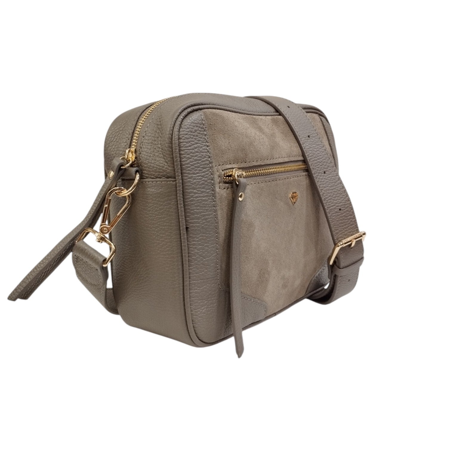 Caleidos Borsa a Tracolla Donna in Pelle e Camoscio Nebbia