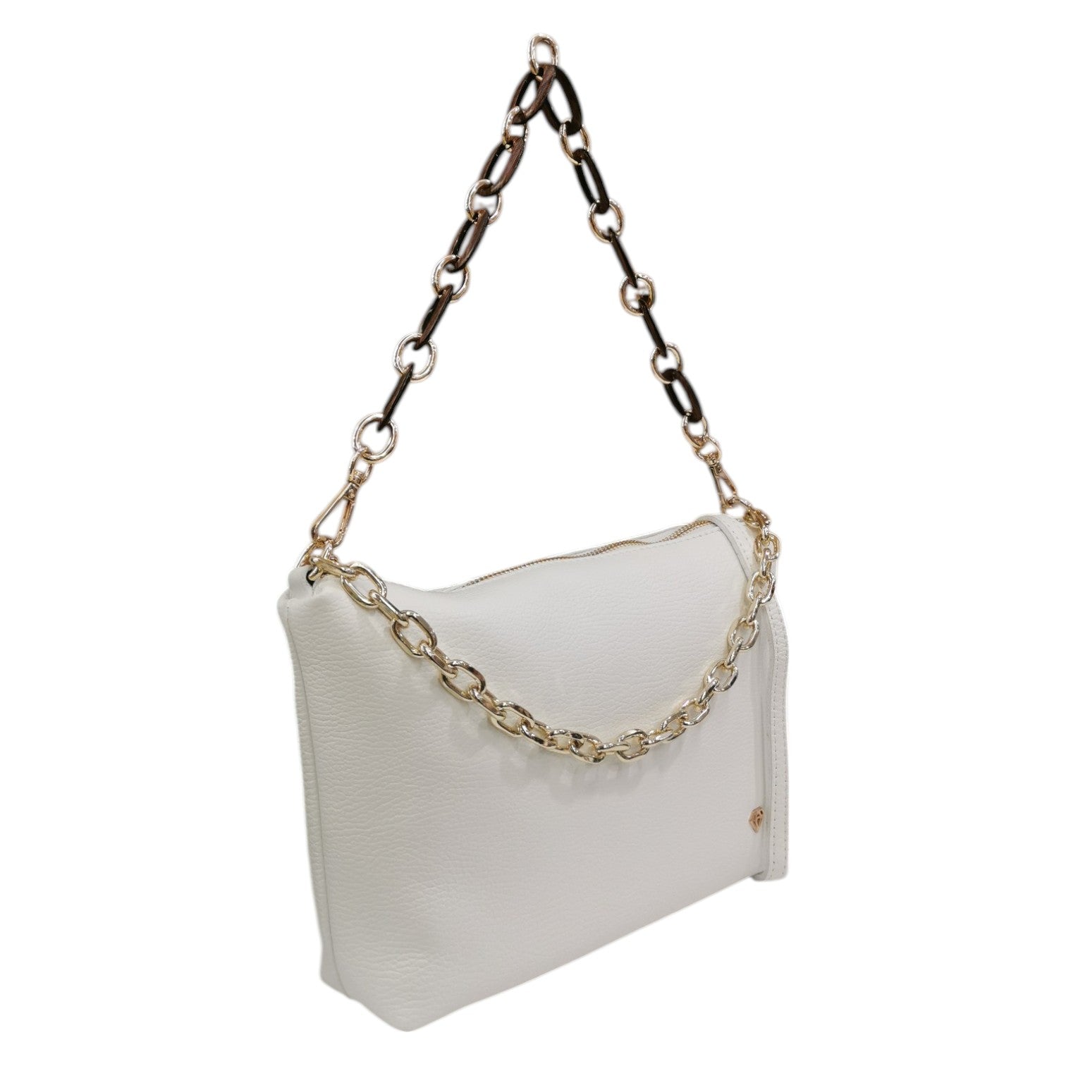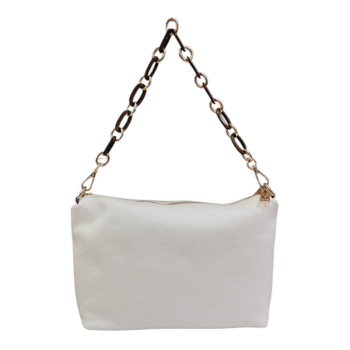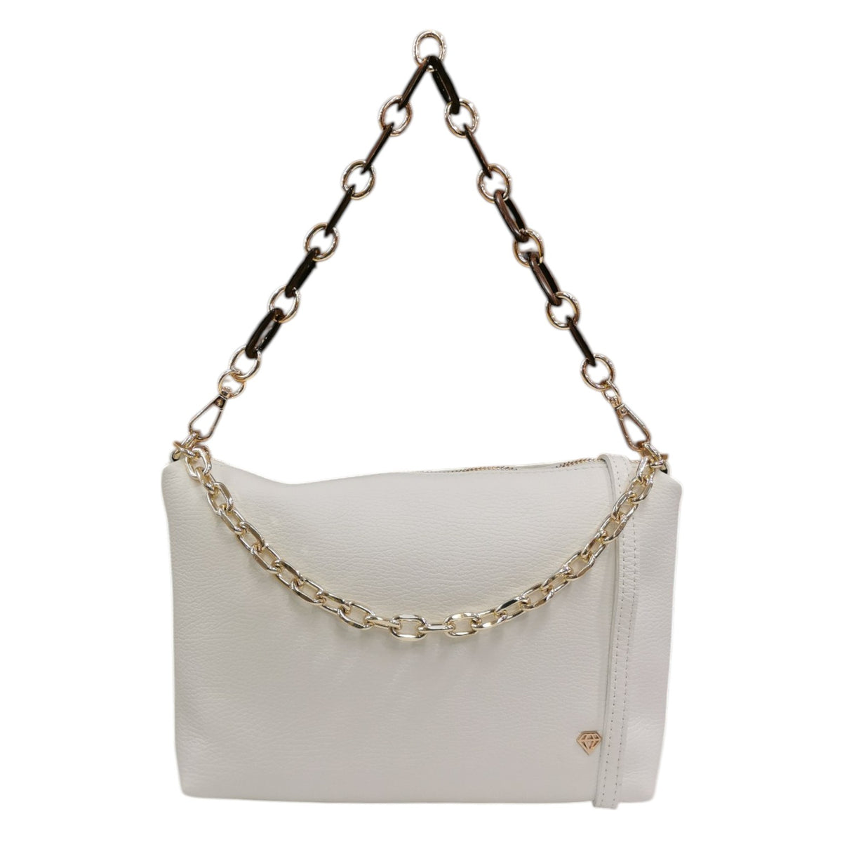 Caleidos Pochette Donna in Pelle Bianca con Tracolla e Catena Dorata