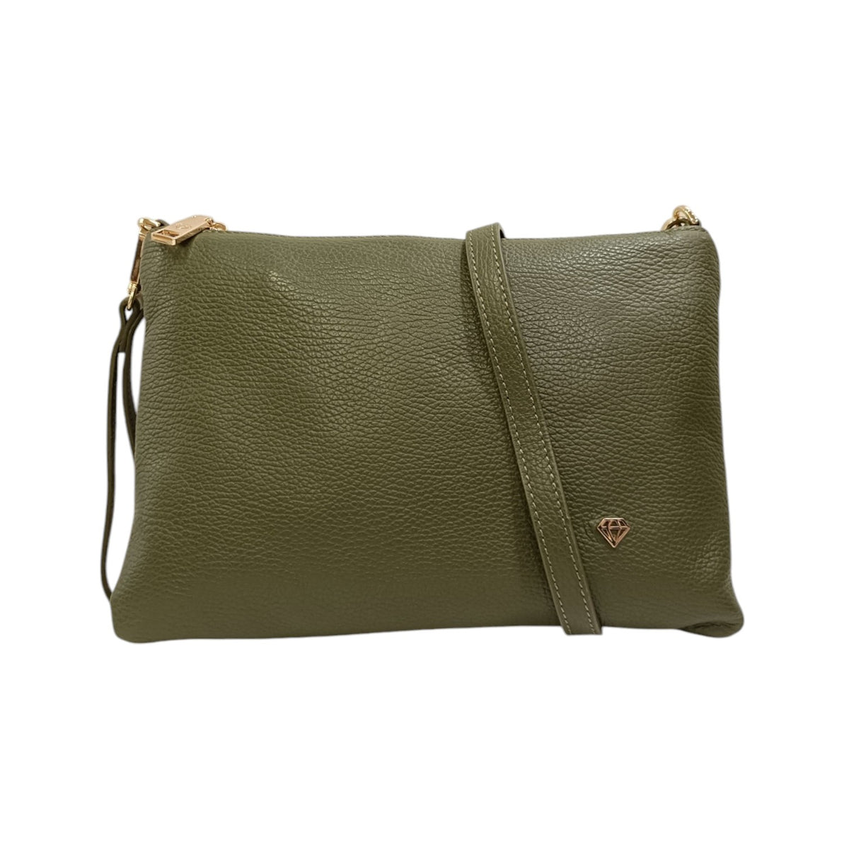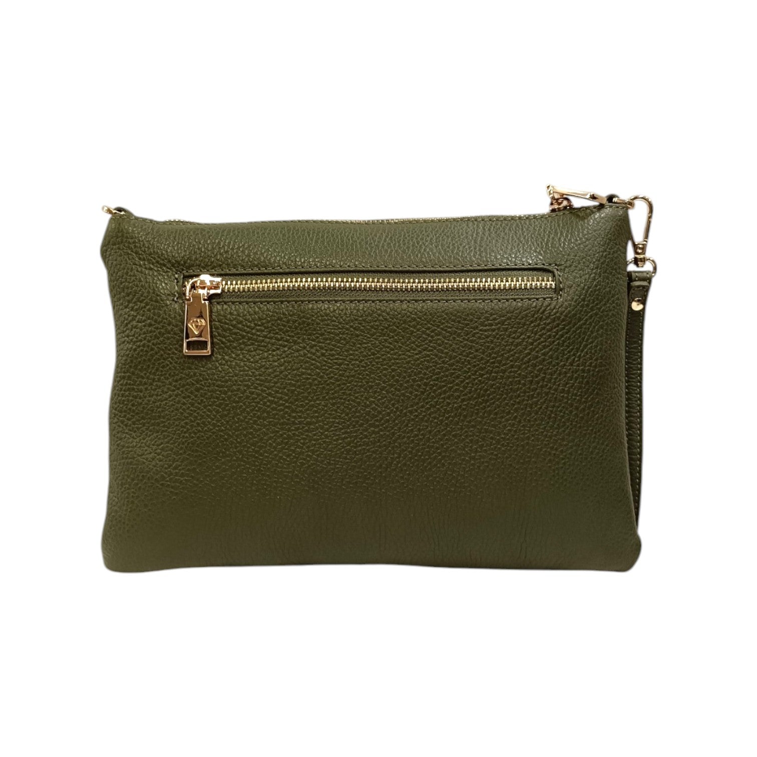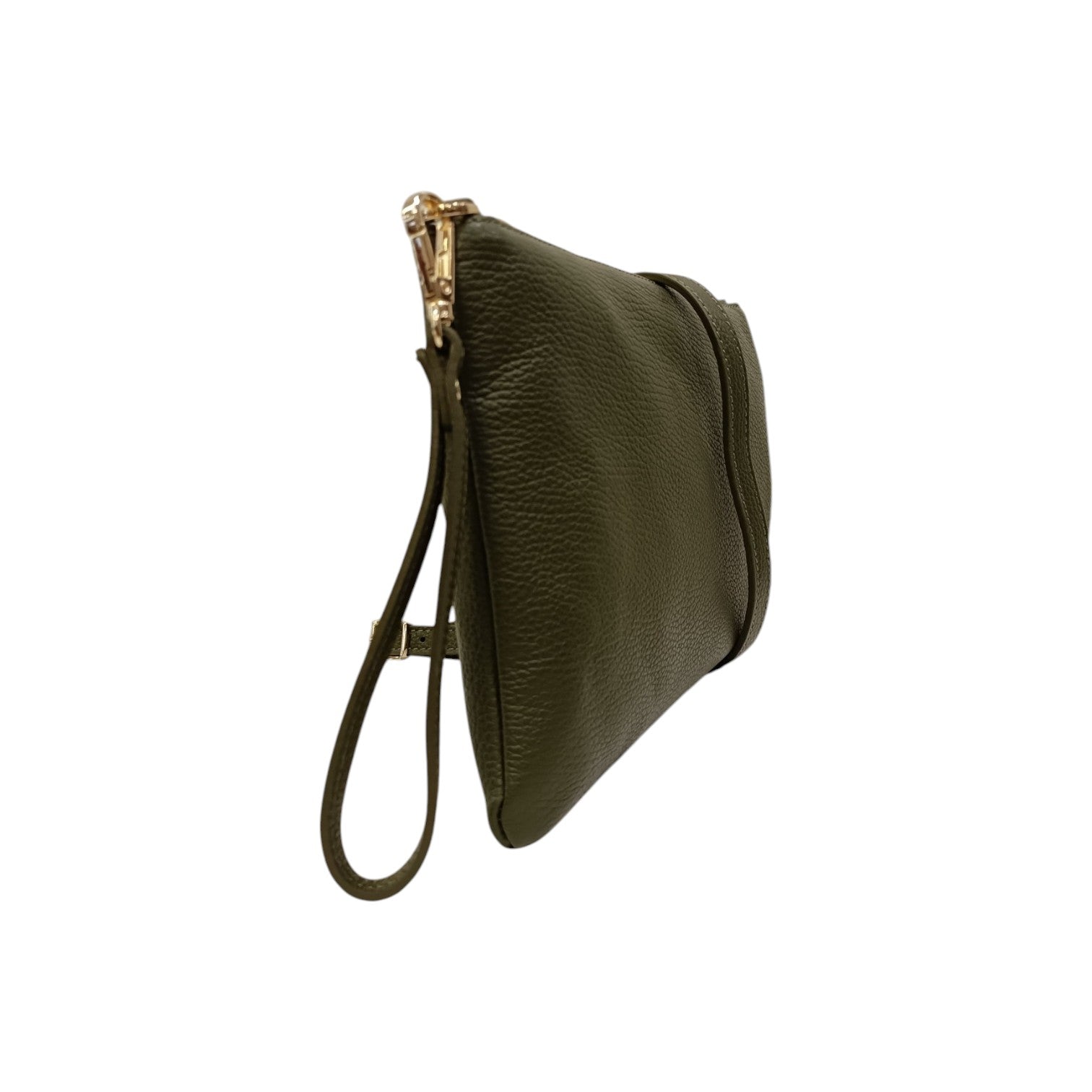 Caleidos Pochette Donna in Pelle Foresta con Tracolla e Polsino e Logo Laterale